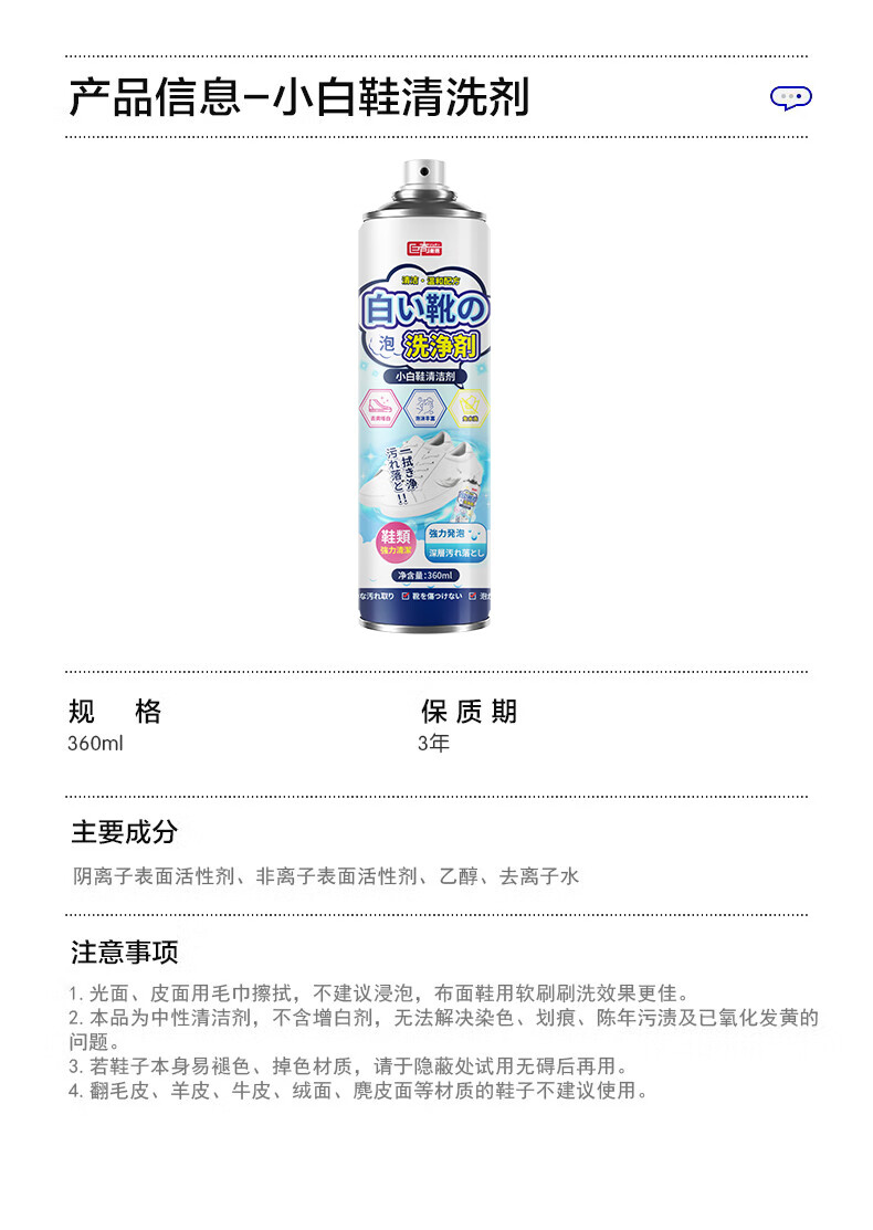 巨奇 小白鞋清洁泡泡360ml*2瓶