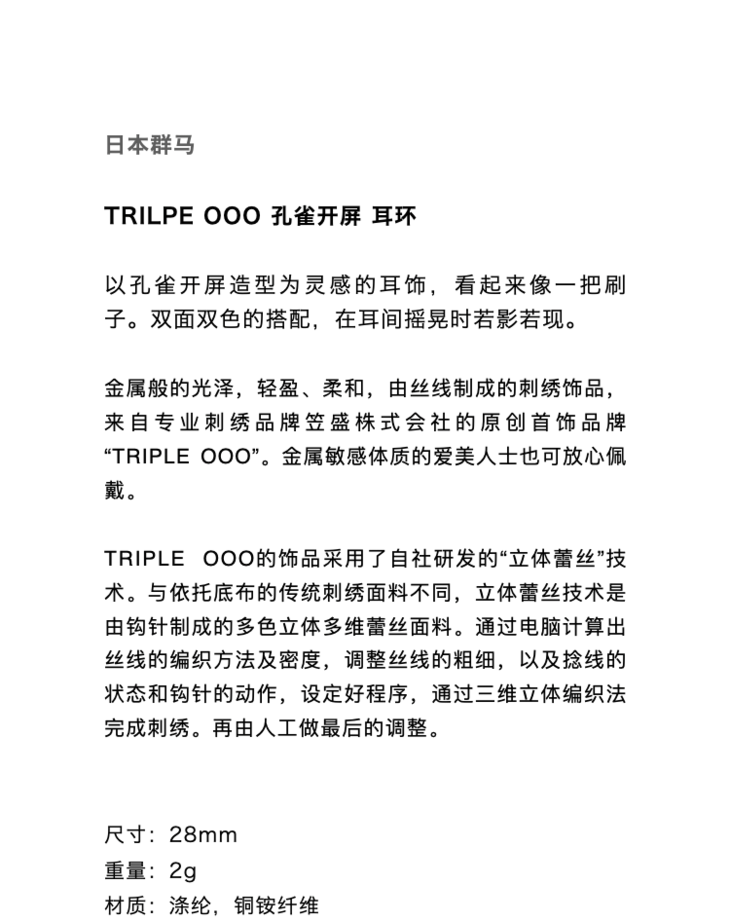 TRIPLE OOO|孔雀开屏耳环 商品图2