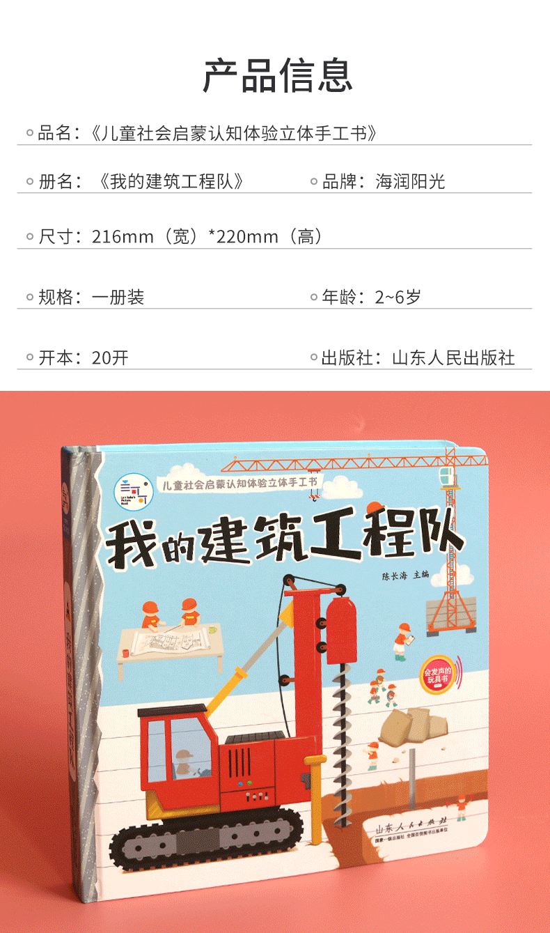 (仓发) 儿童社会启蒙认知体验立体书:我的建筑工程队 立体书 手工书 玩具 海润阳光/山东人民出版社/陈长海/9787209127240