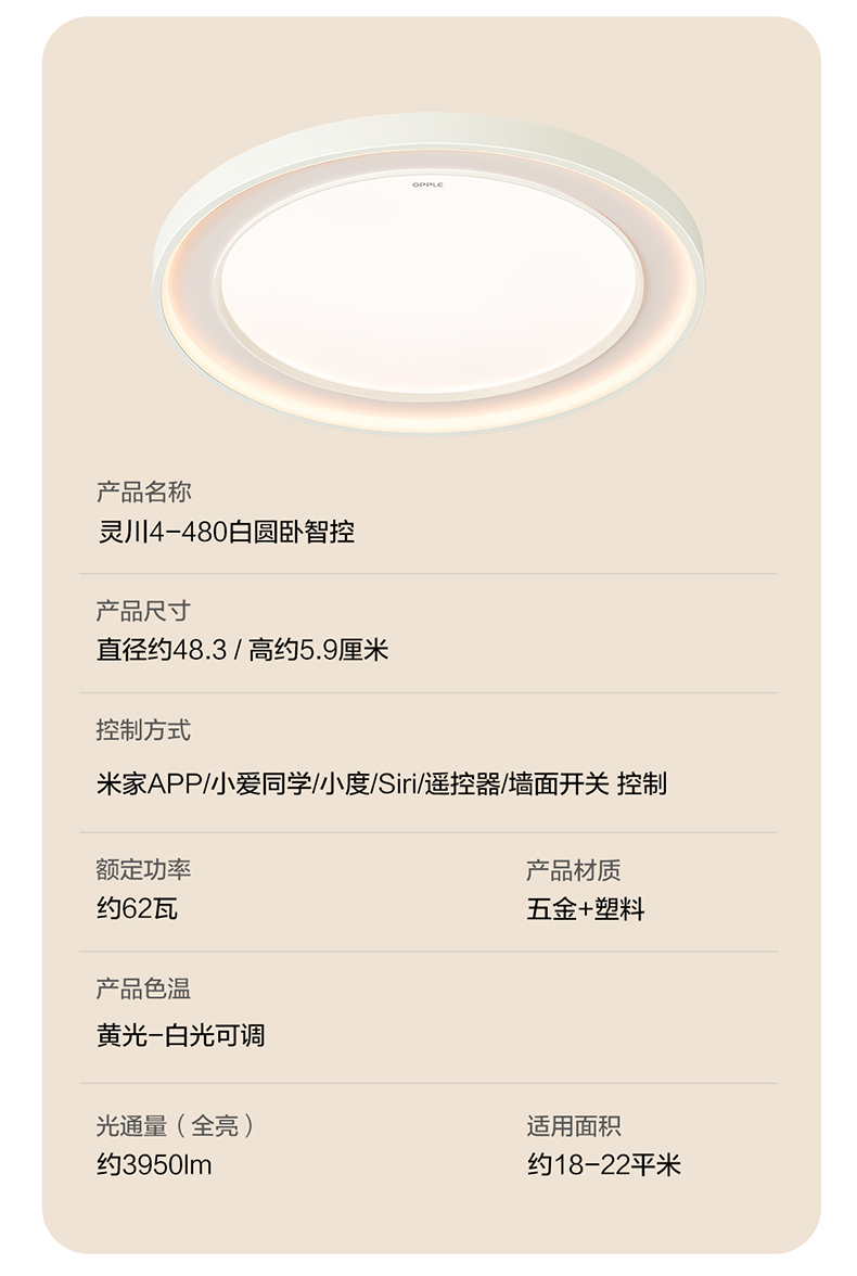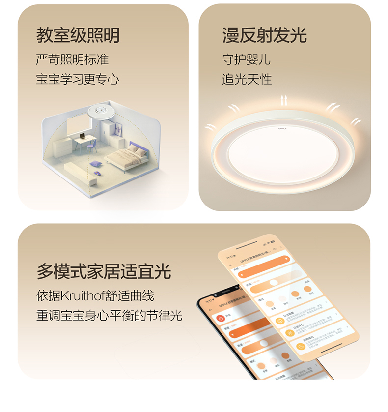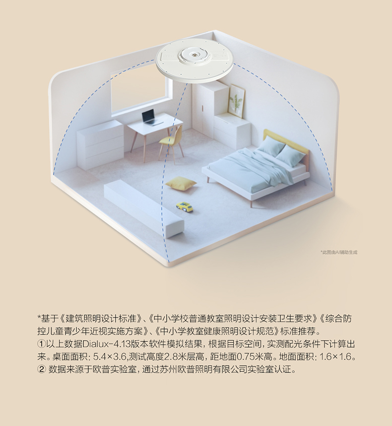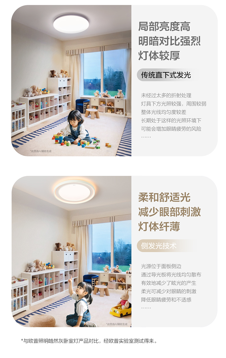 欧普(OPPLE)灵川侧发光卧室专业光学简约现代漫反射防眩儿童房吸顶灯