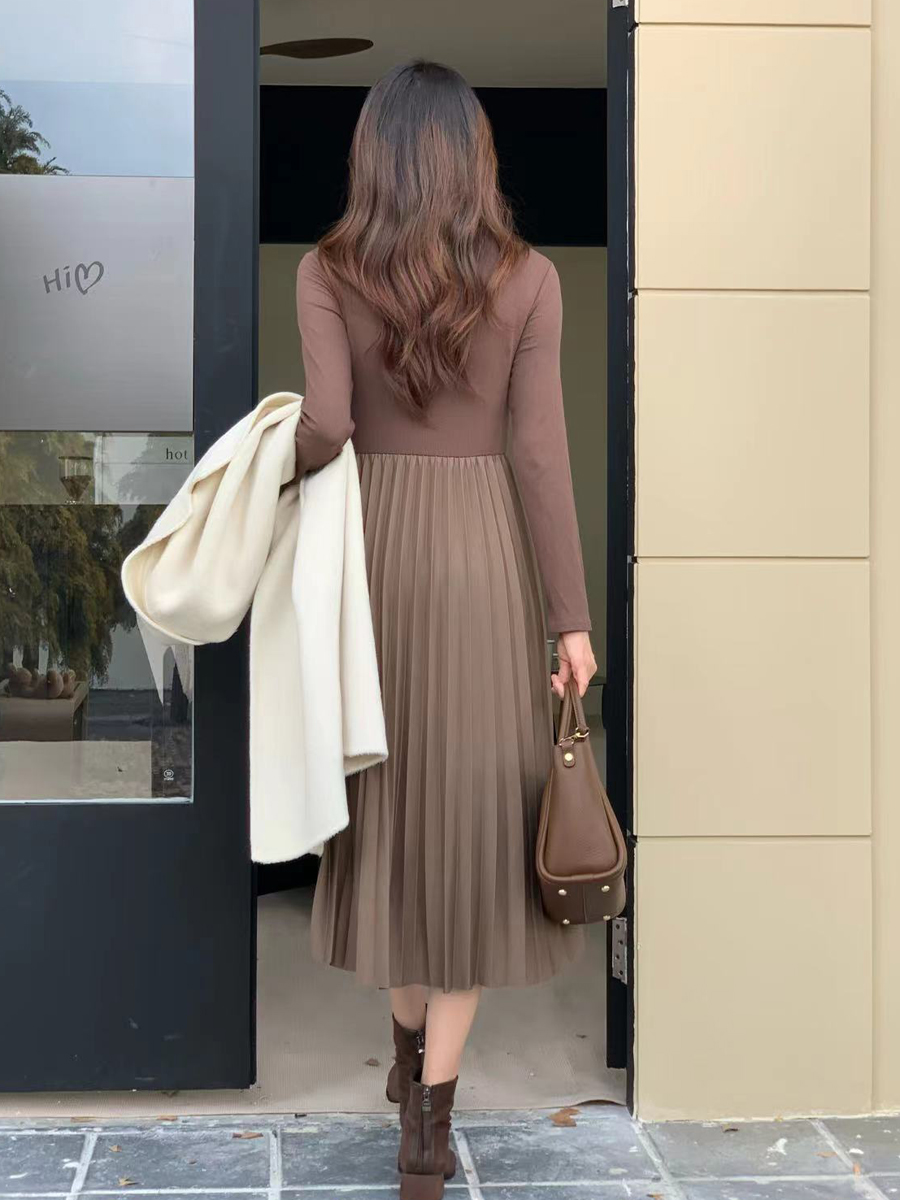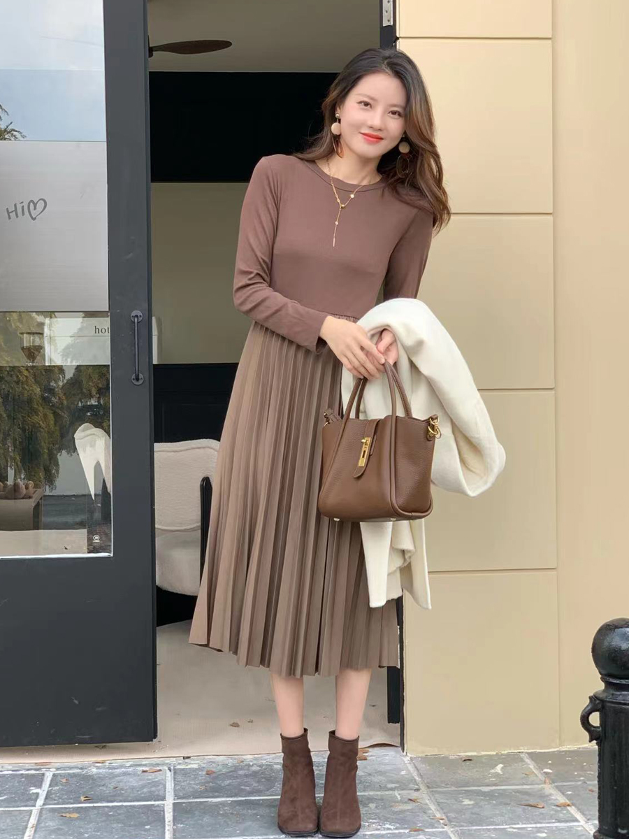 内搭的连衣裙还能和各种羽绒服,大衣搭配,