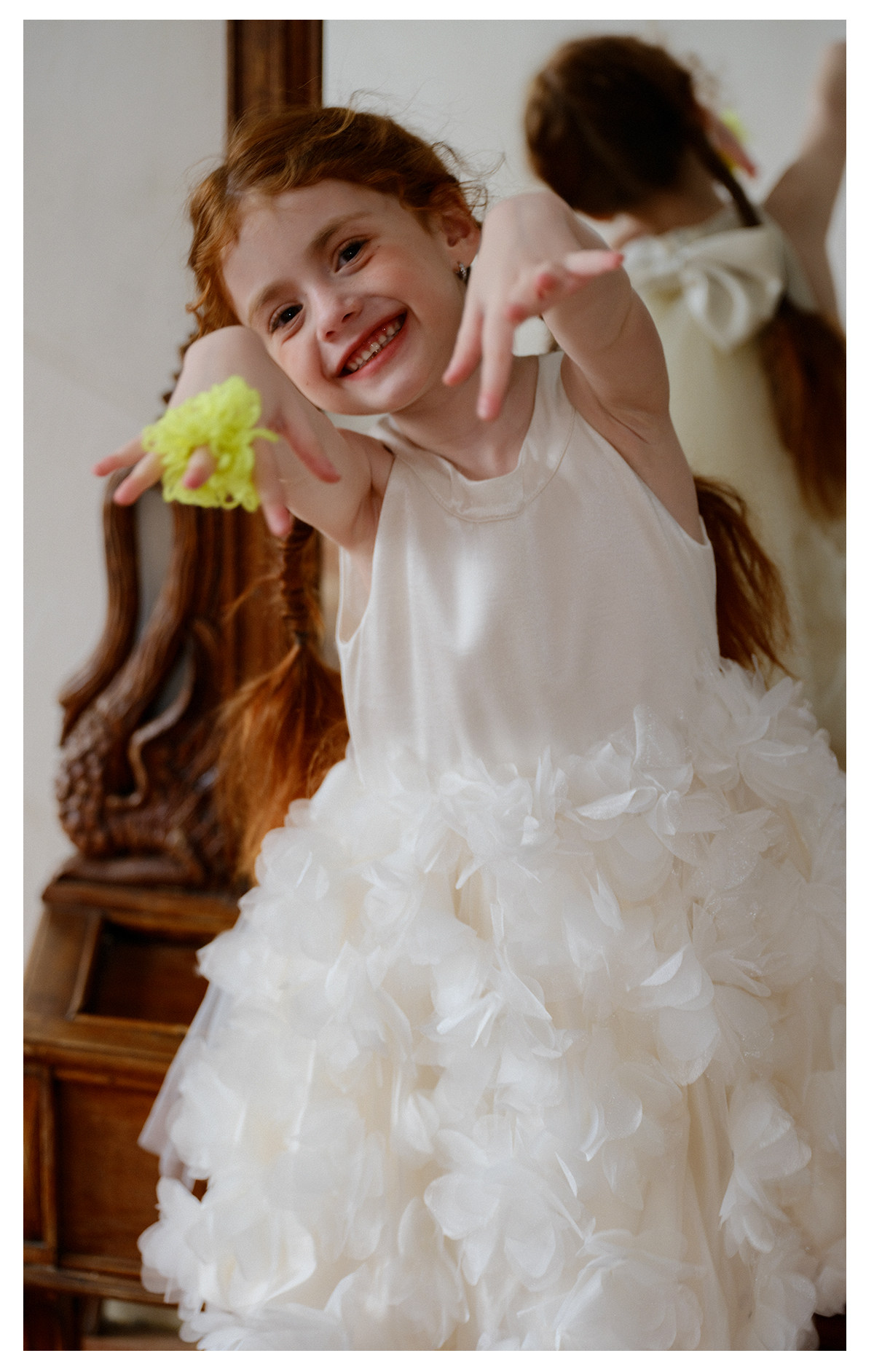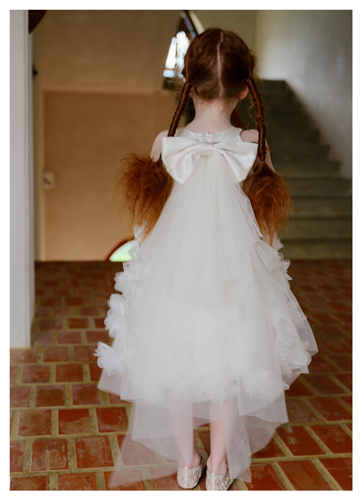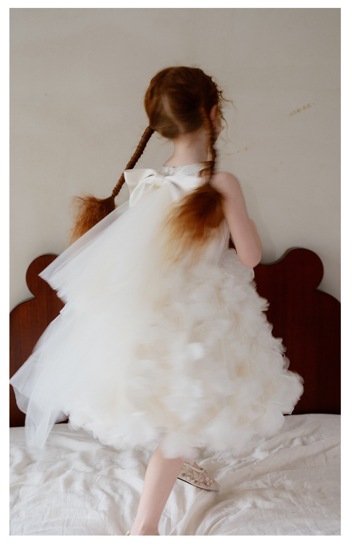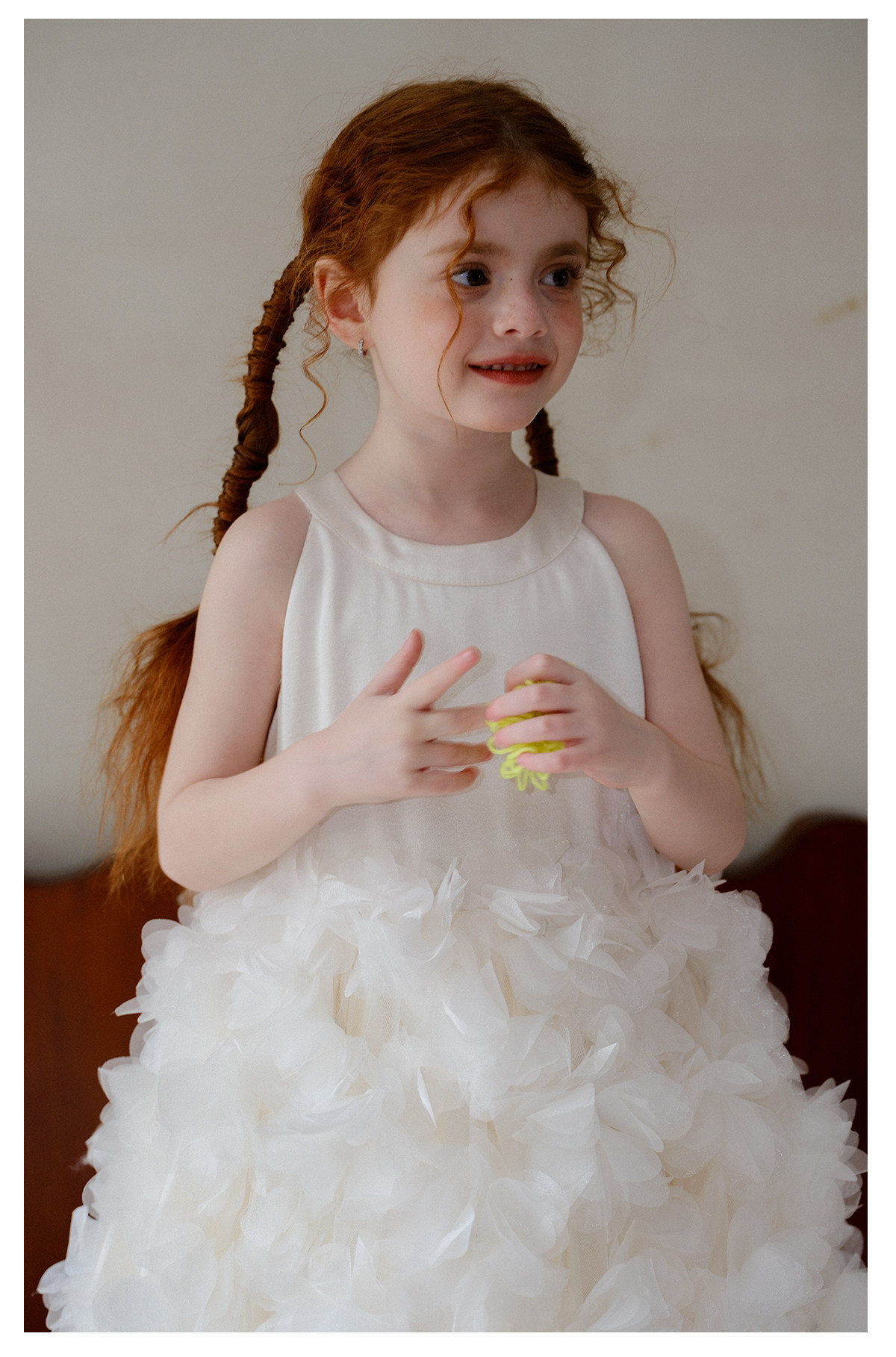 littletime26春夏女童公主婚纱挂脖网纱连衣裙白色立体花朵蛋糕裙