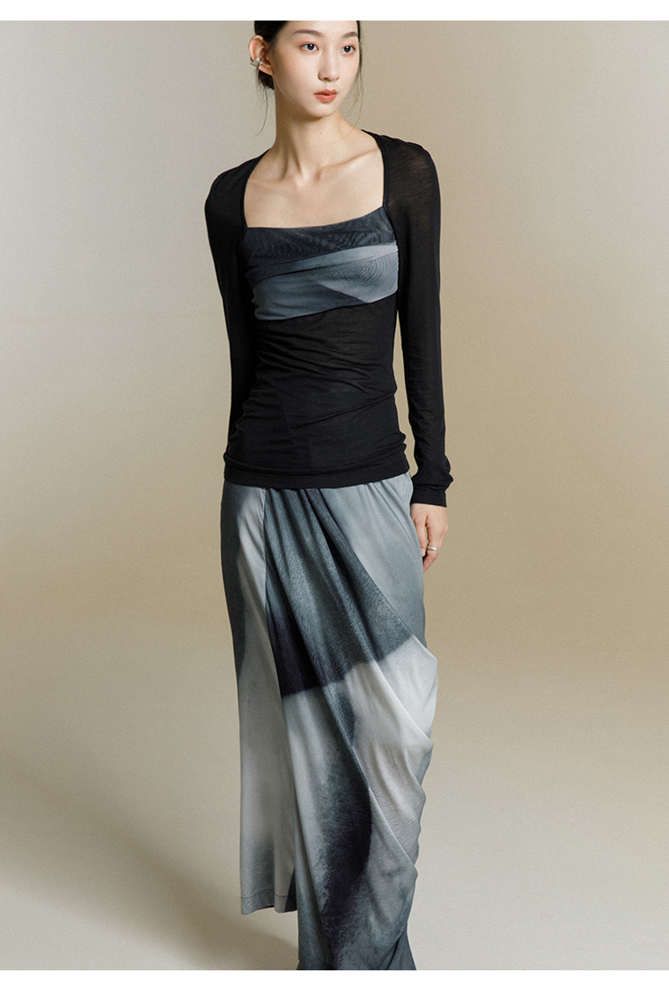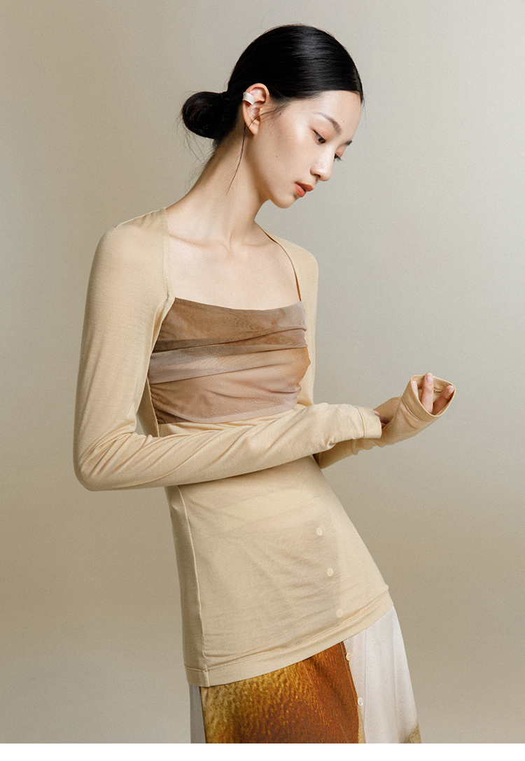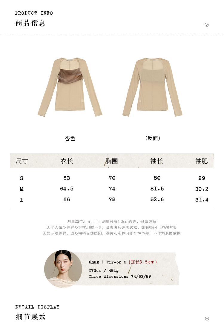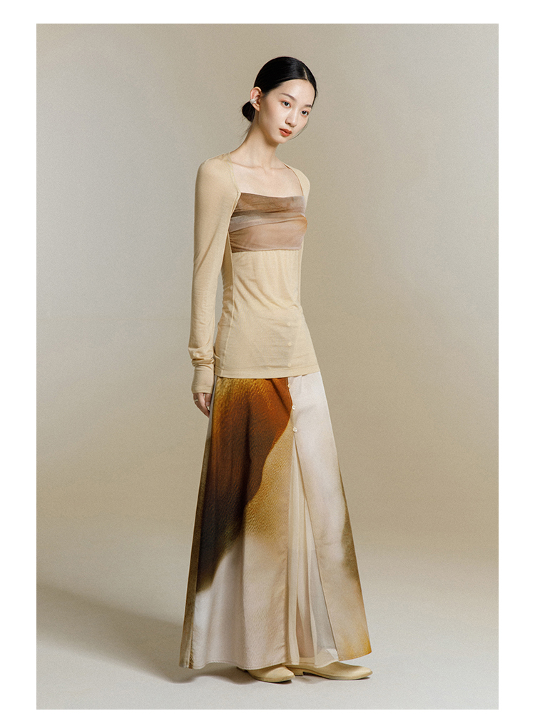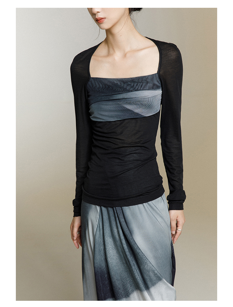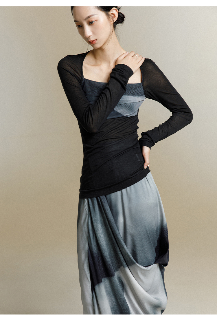 MURMURMI/MT166/印花拼接方领T恤 女初秋长袖上衣