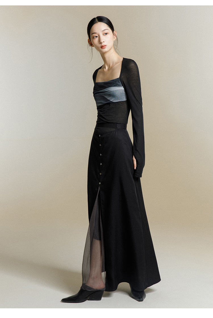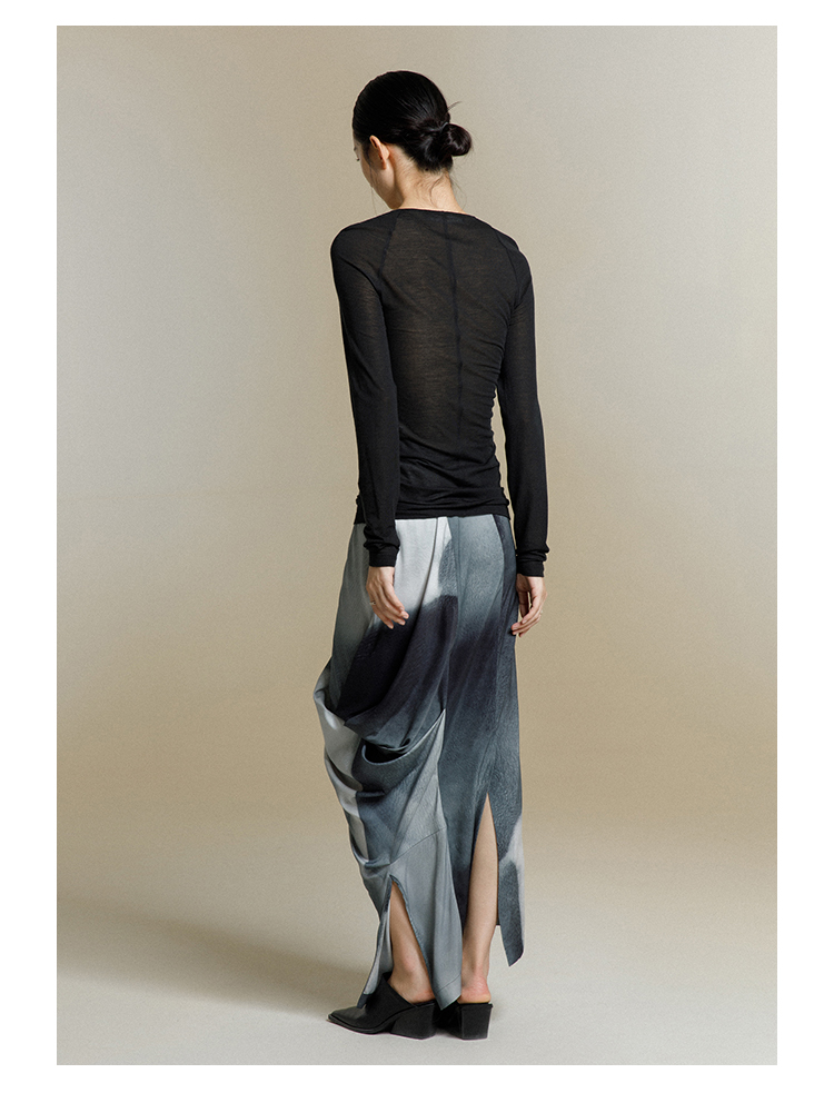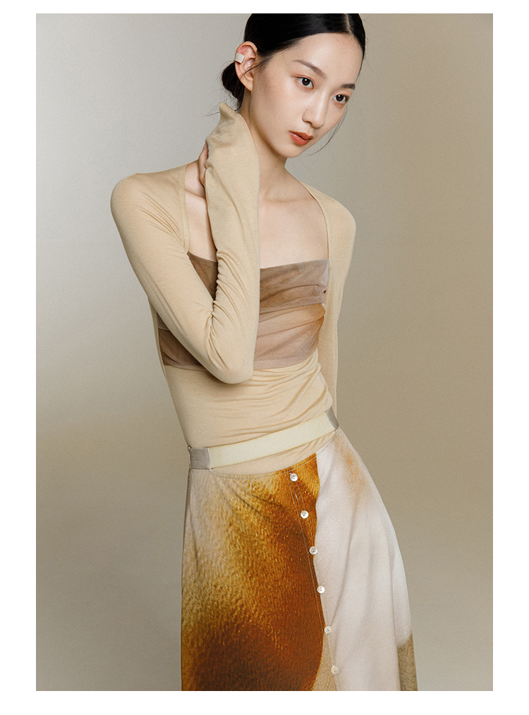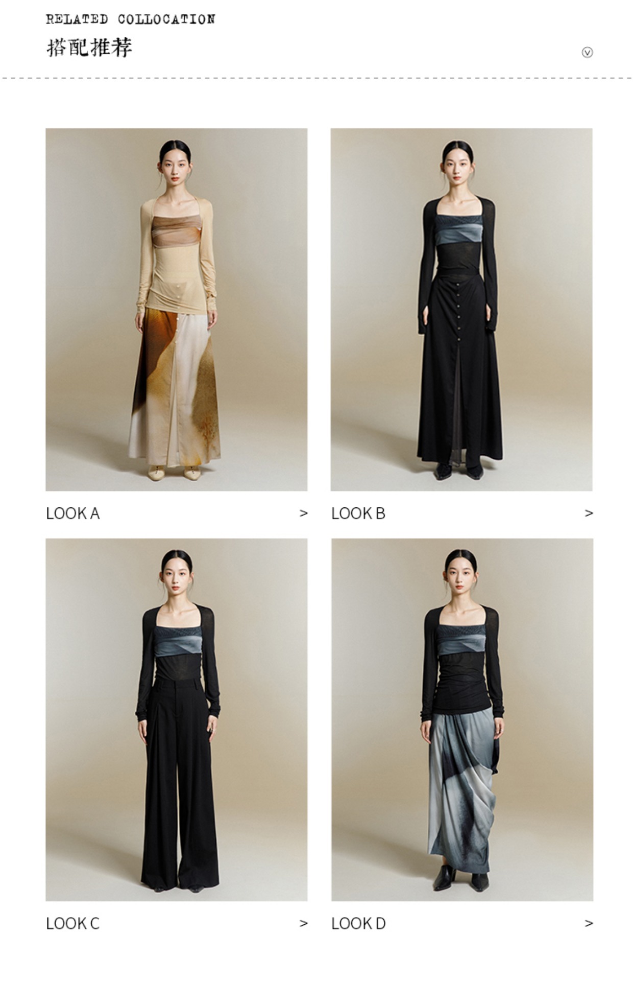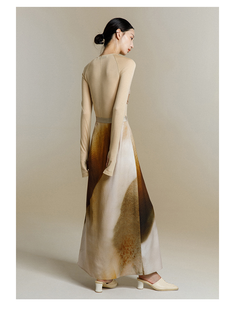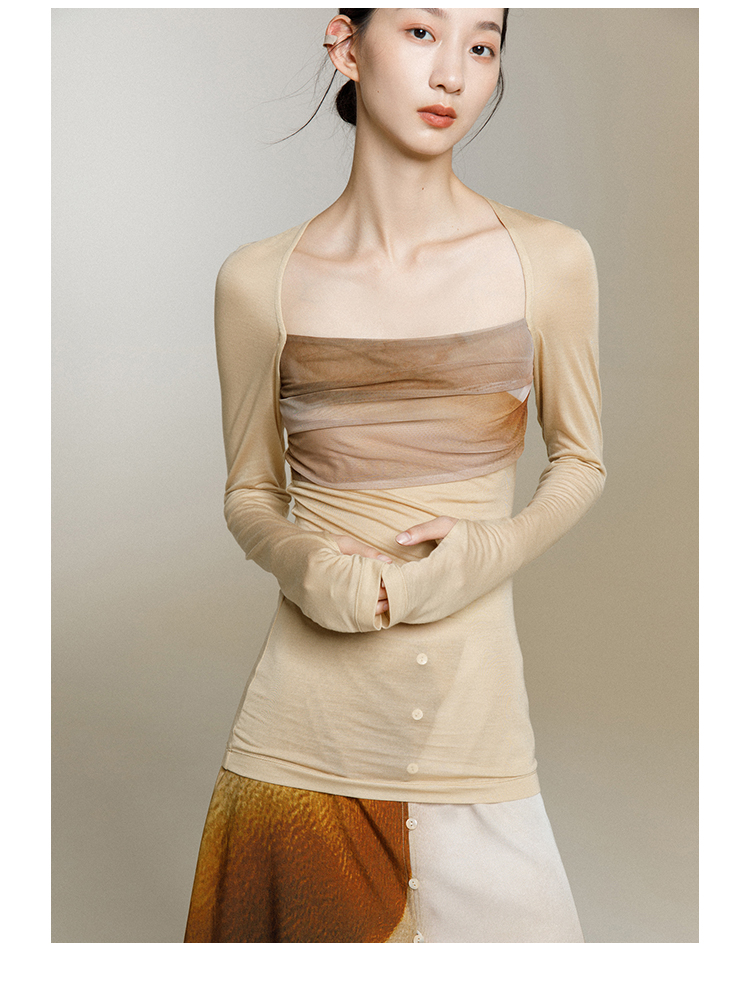 MURMURMI/MT166/印花拼接方领T恤 女初秋长袖上衣