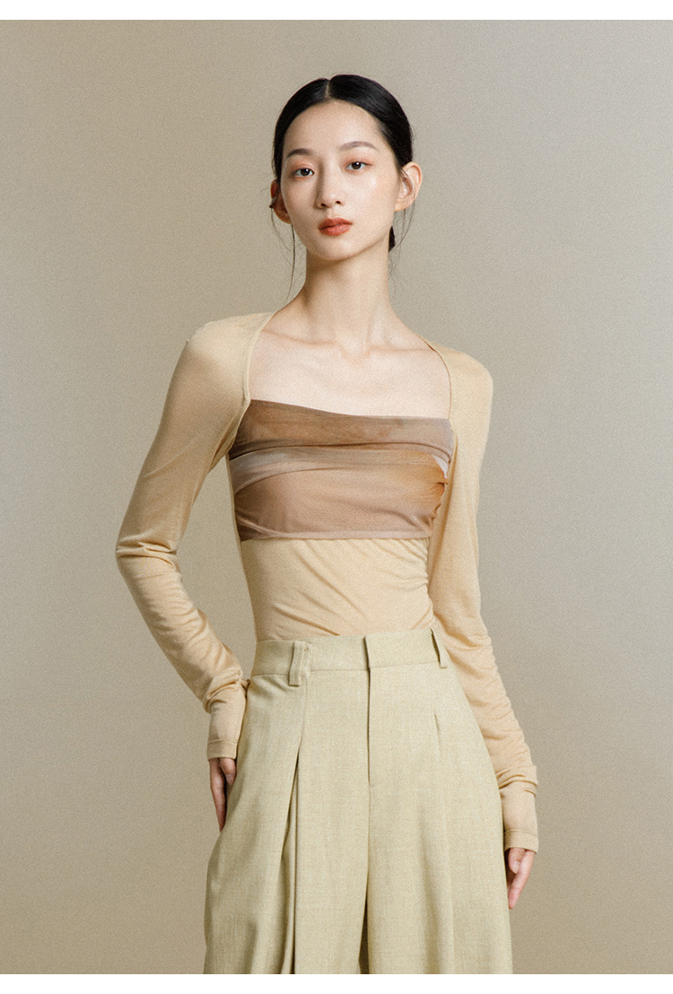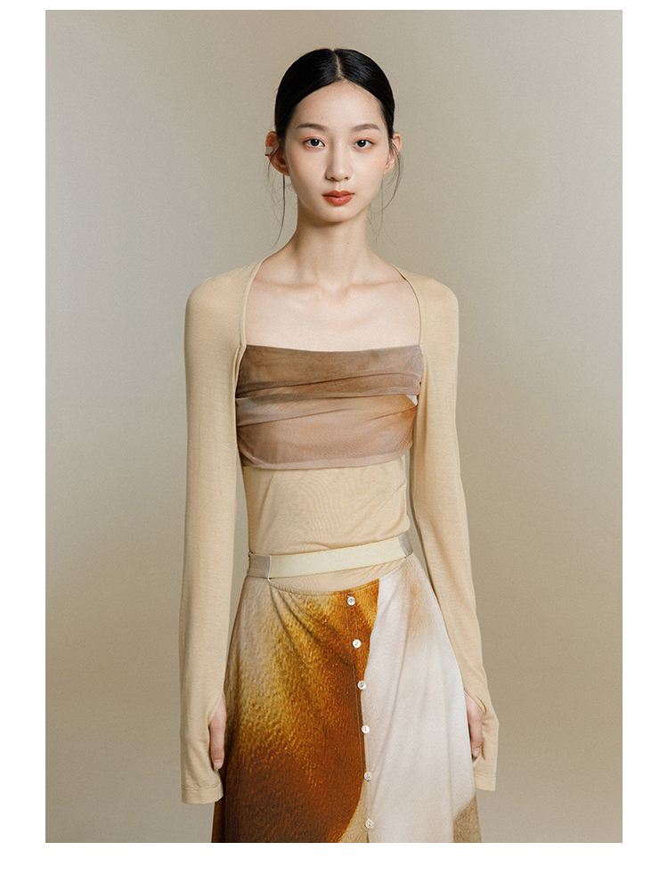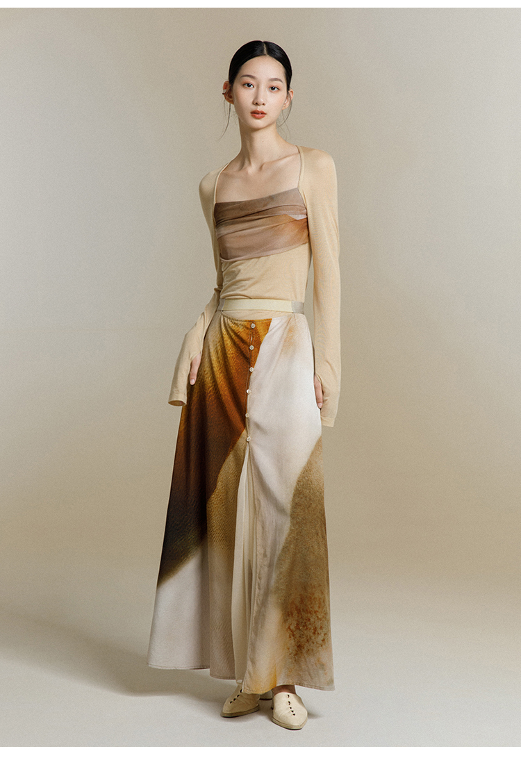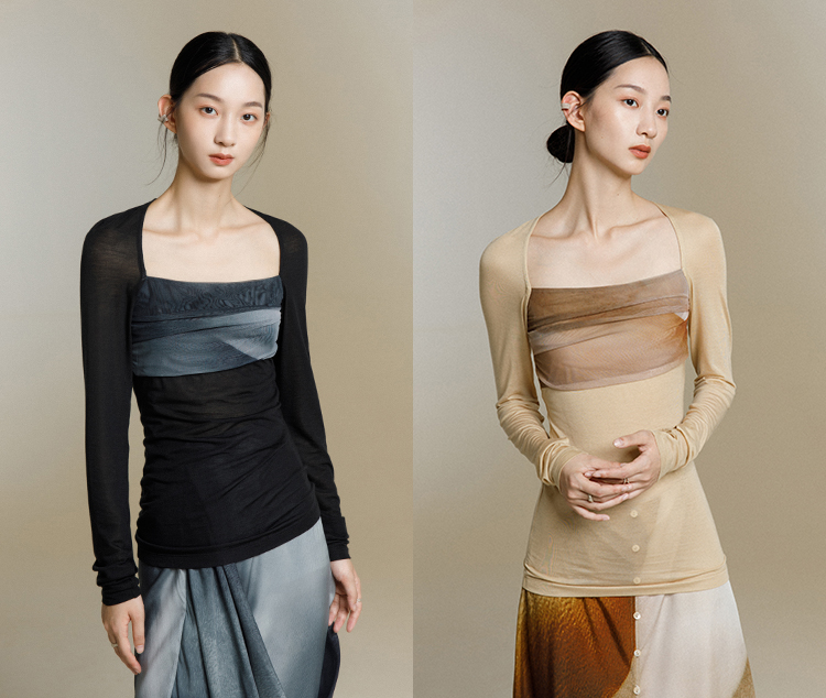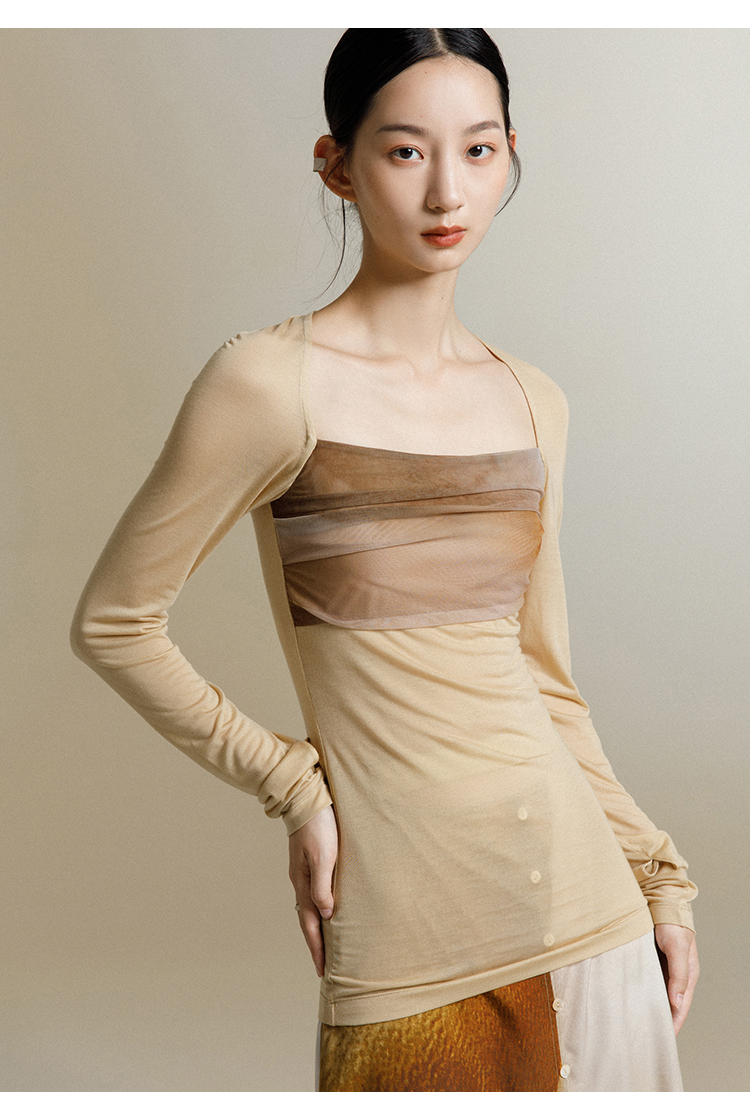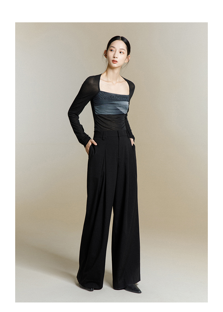 MURMURMI/MT166/印花拼接方领T恤 女初秋长袖上衣