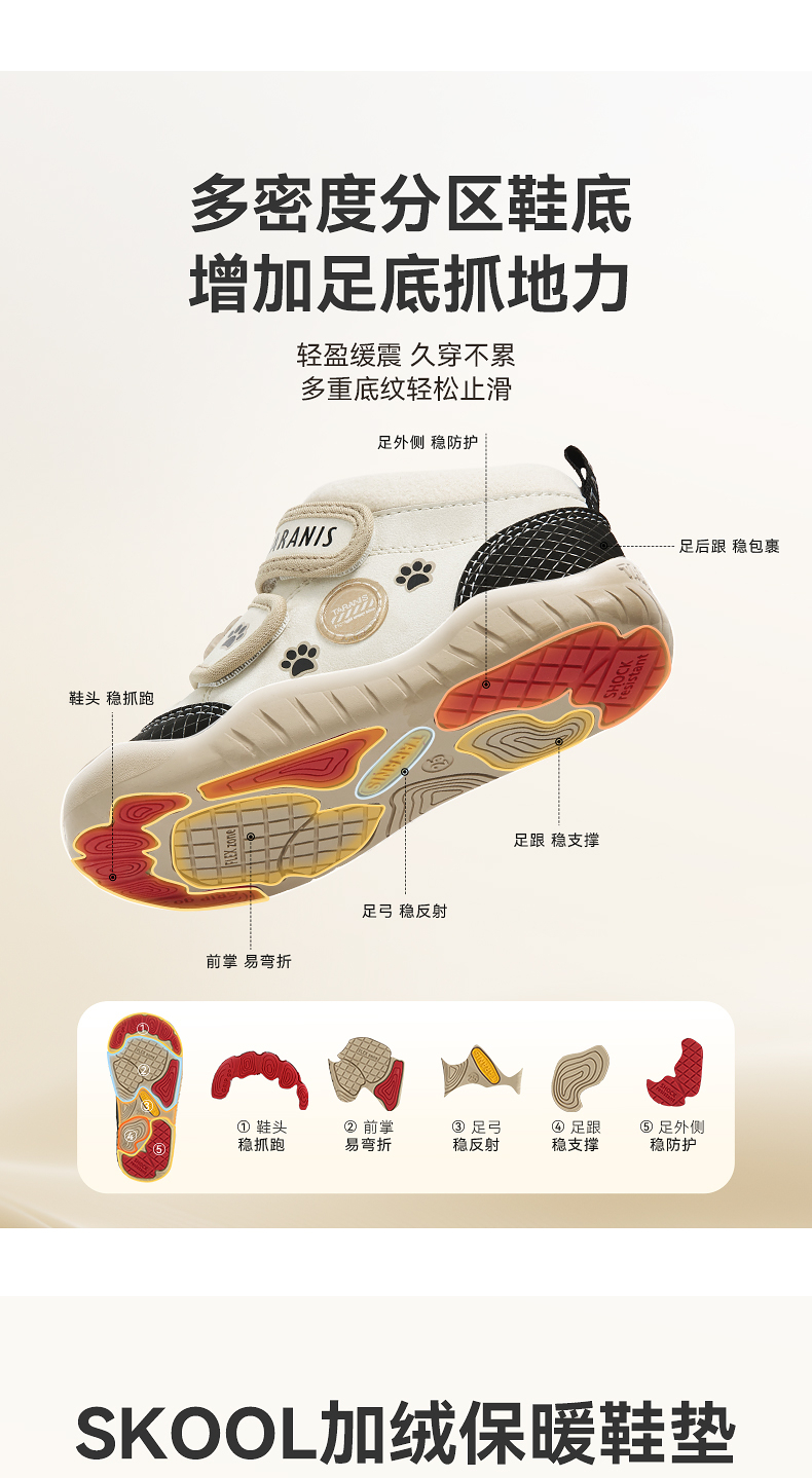 泰兰尼斯童鞋冬季新款311儿童幼儿园室内鞋男女童学步鞋保暖板鞋泰兰尼斯幼儿园鞋T02X5D6653