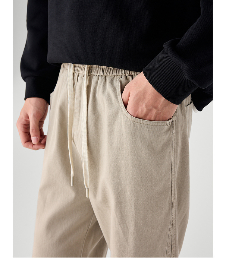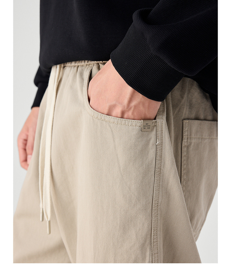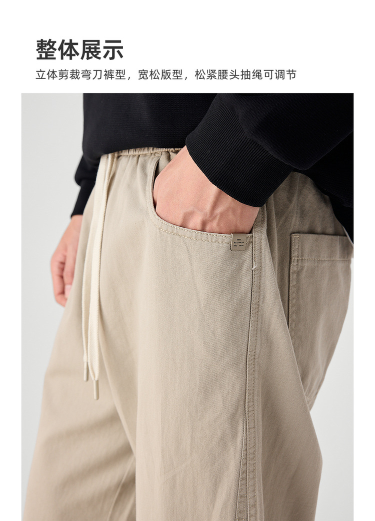 墨麦客男装松紧腰宽松休闲裤男2025春新款全棉简约男士裤子91171.