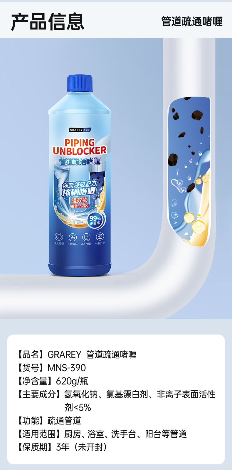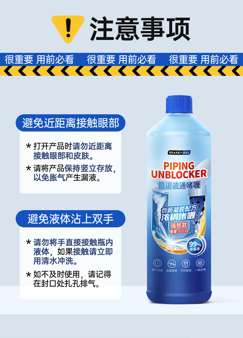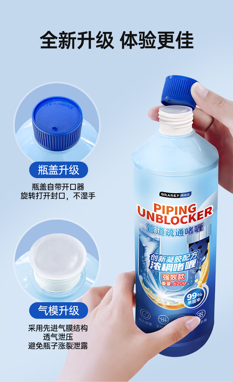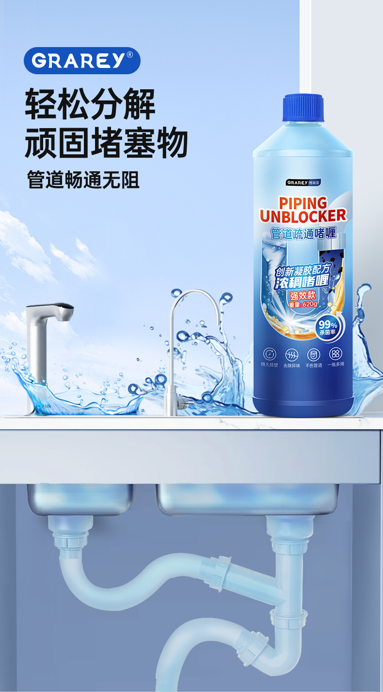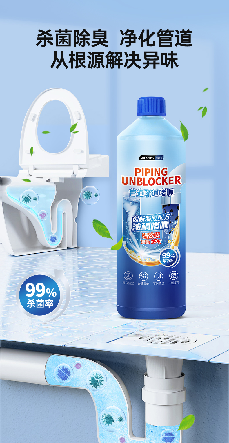 【GRAREY格瑞亚-管道疏通啫喱强效款】杀菌❗灭虫❗除臭❗一瓶解决!轻松省掉大几百的人工费‼
