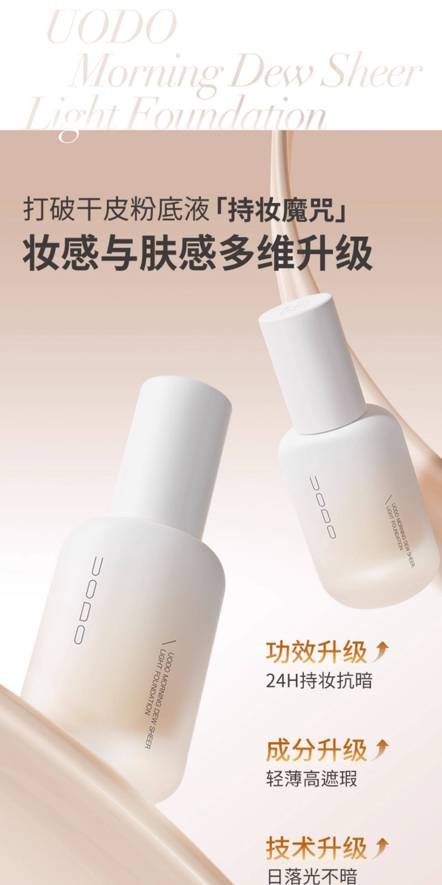 UODO优沃朵粉底液 持妆水润遮瑕持久不脱妆女干2.0
