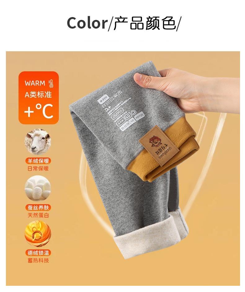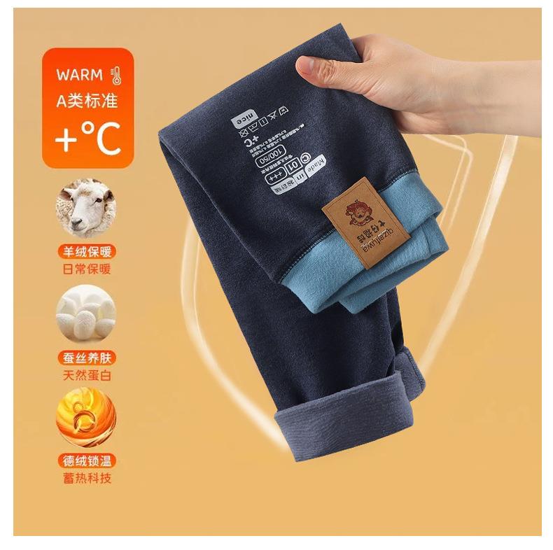 【39元2条】七仔福娃儿童加绒裤子男童保暖裤女童内搭打底裤宝宝拼色拼腰秋裤校服神器90-170