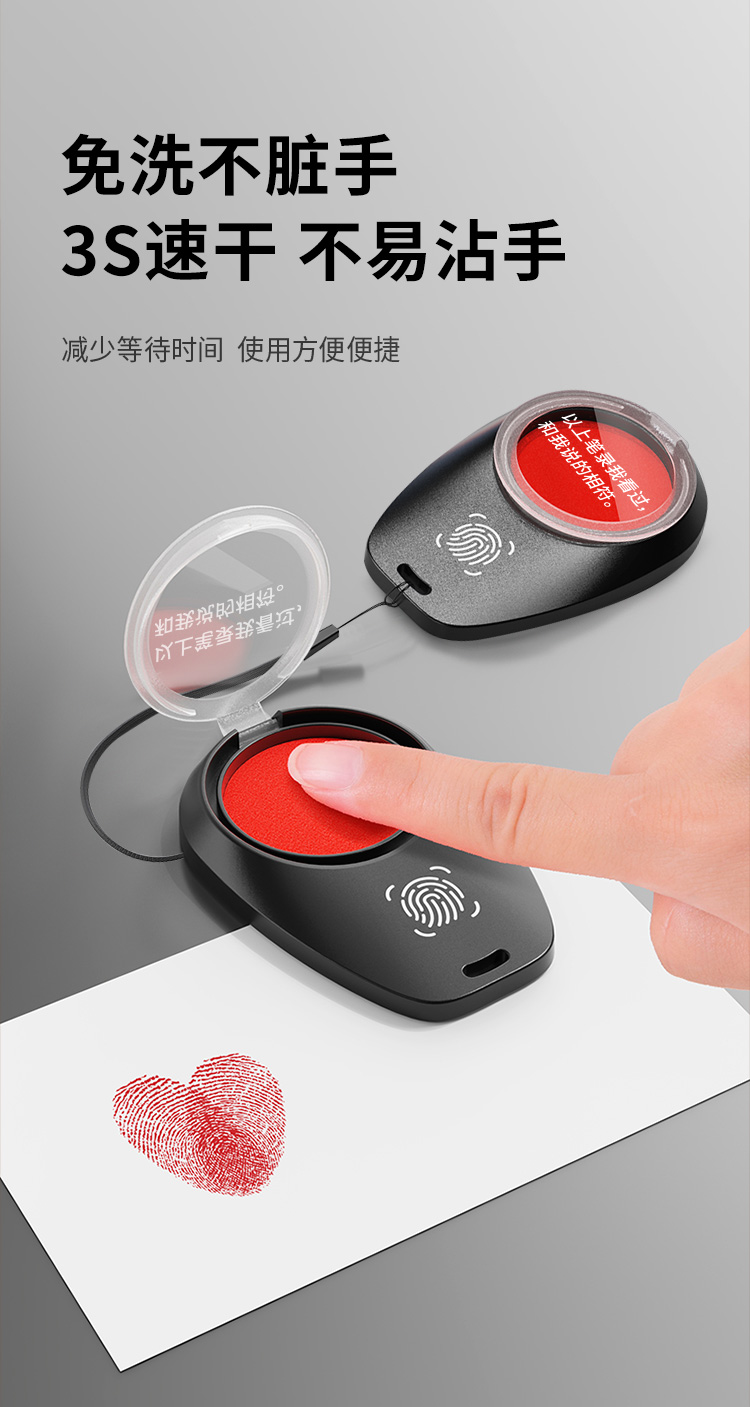 【实付满199送钥匙扣】【速干笔录指纹印台】轻便小巧迷你指纹印章快干办公印台