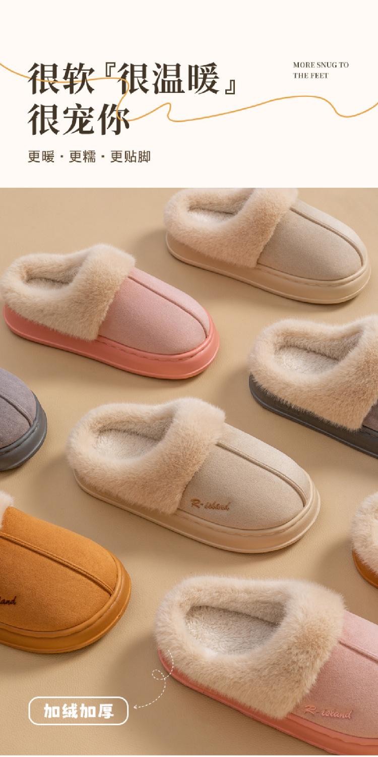 【加绒厚底拖鞋】2024新款秋冬季毛绒棉拖鞋男女 居家室内厚底防滑加绒保暖冬天