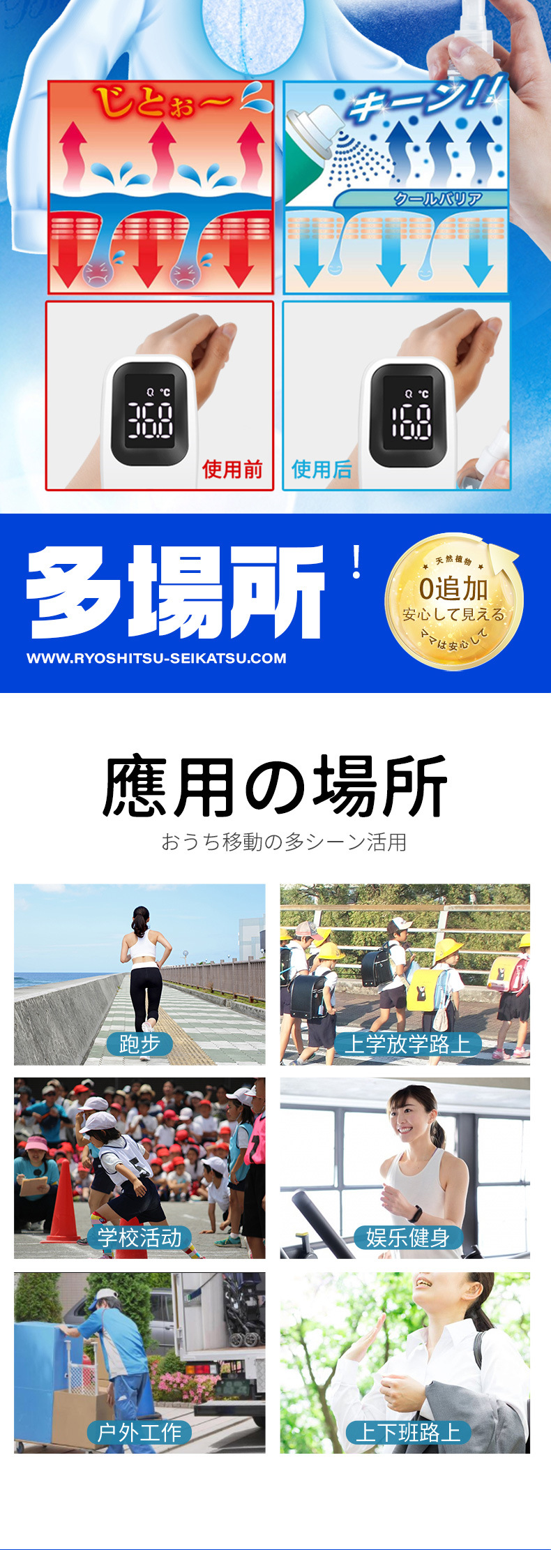 [使用方法]直接距衣物10cm以上进行喷洒每处喷3-5次;喷在腋下、后背、脖颈等易出汗处,效果更佳
