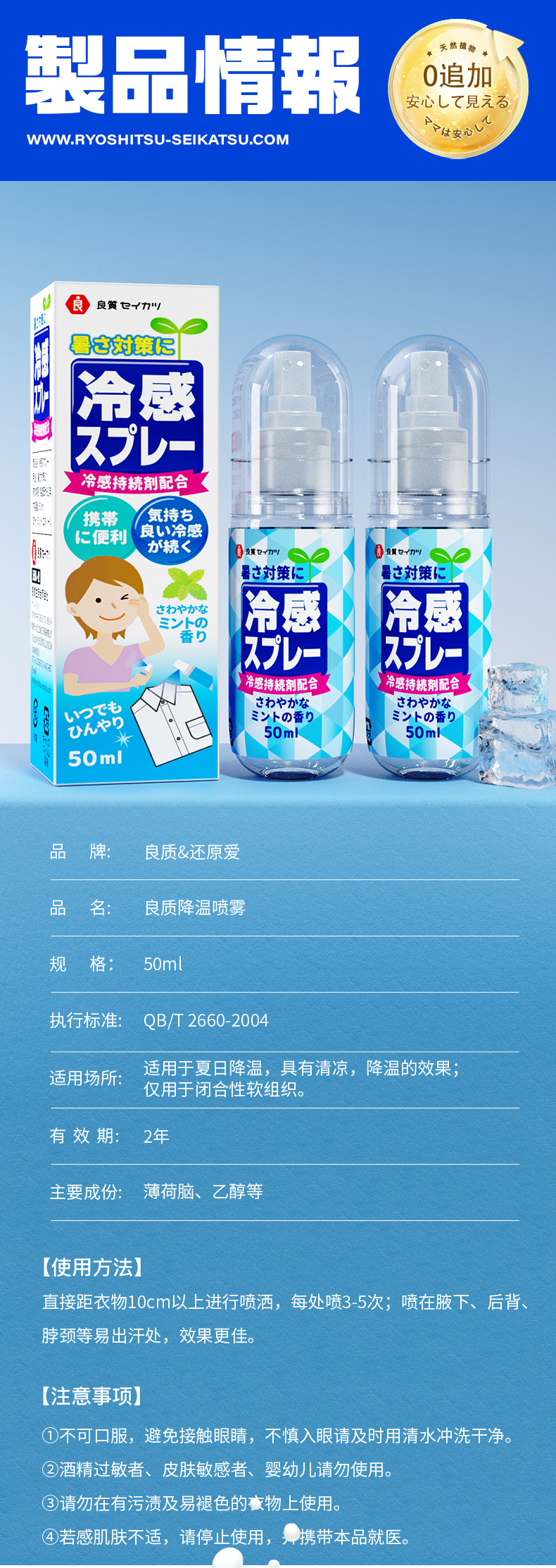 [使用范围]:适用于夏日降温,具有清凉,降温的效果,仅用于闭合性软组织。