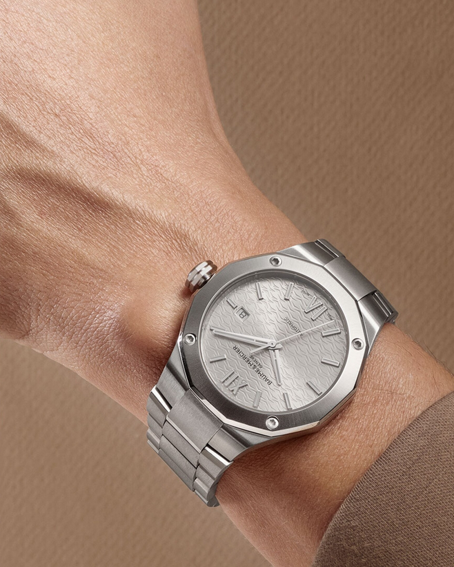 镜面材质 | 蓝宝石水晶玻璃 | 表盘 | 精钢十二边形表壳、饰有独特装饰的银色表盘 日期显示 |