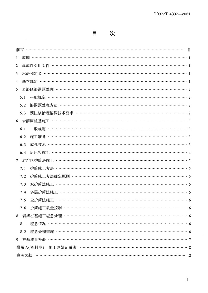 书名:岩溶区桩基施工技术规程(DB37/T 4337—2021)