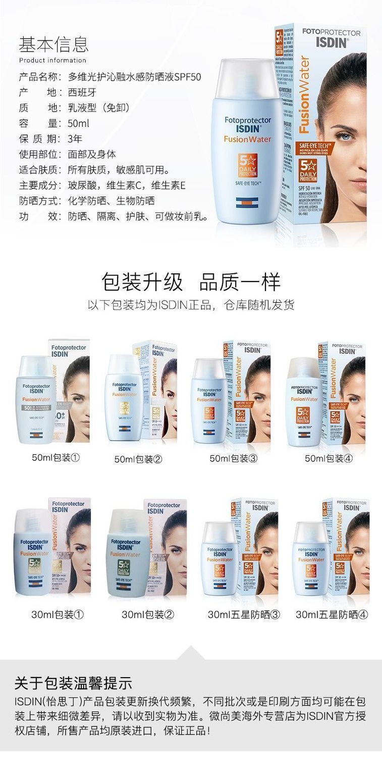 【预售 急单慎拍】怡思丁ISDIN超薄水感防晒霜50ml不搓泥防紫外线SPF50+