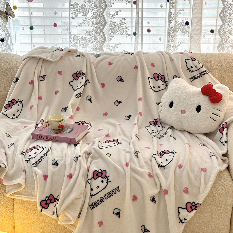 【卡通设计!童趣满满】三丽鸥单层双面牛奶绒薄毛毯空调毯学生宿舍办公室午休沙发小毯子被子。ry