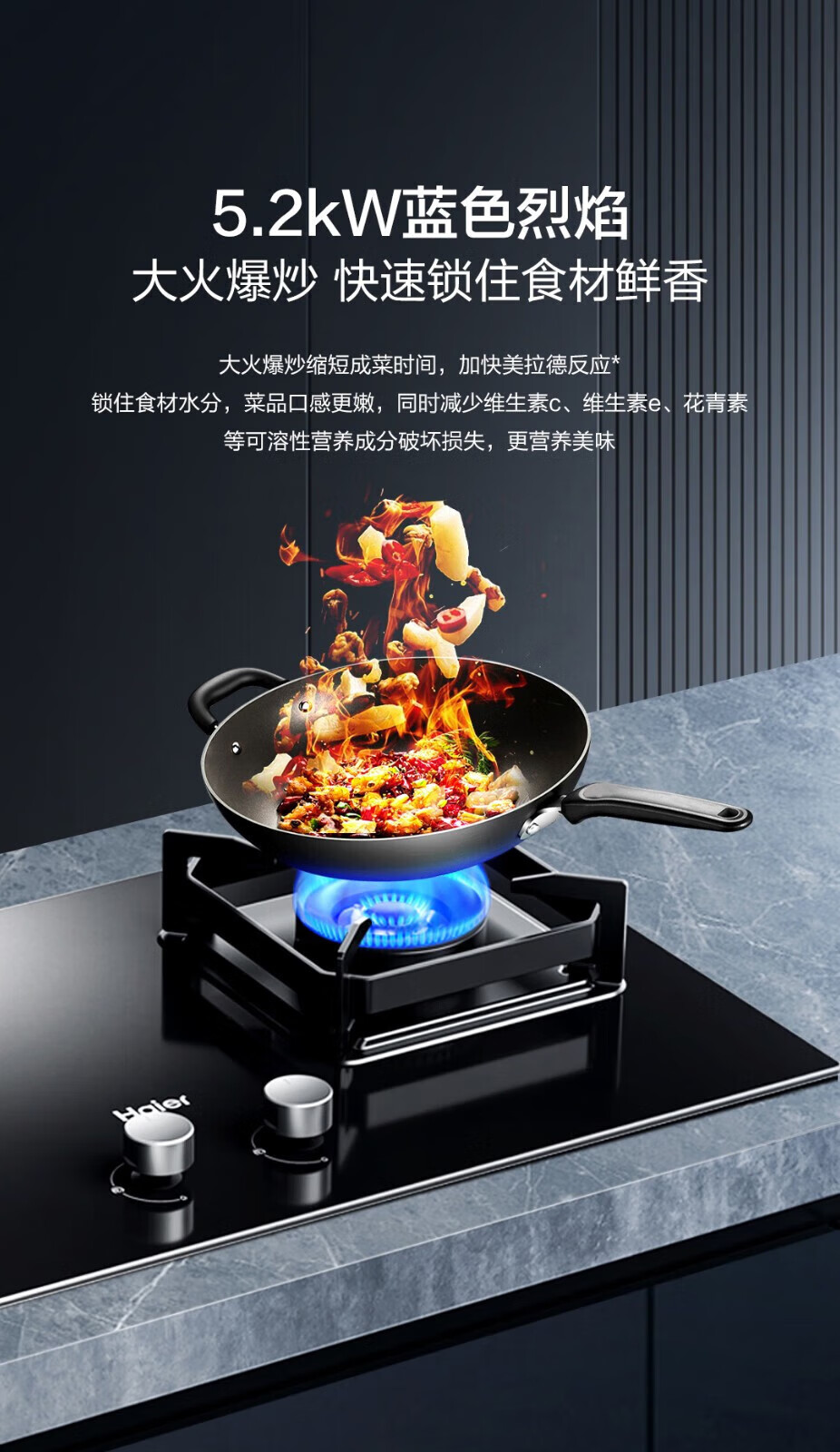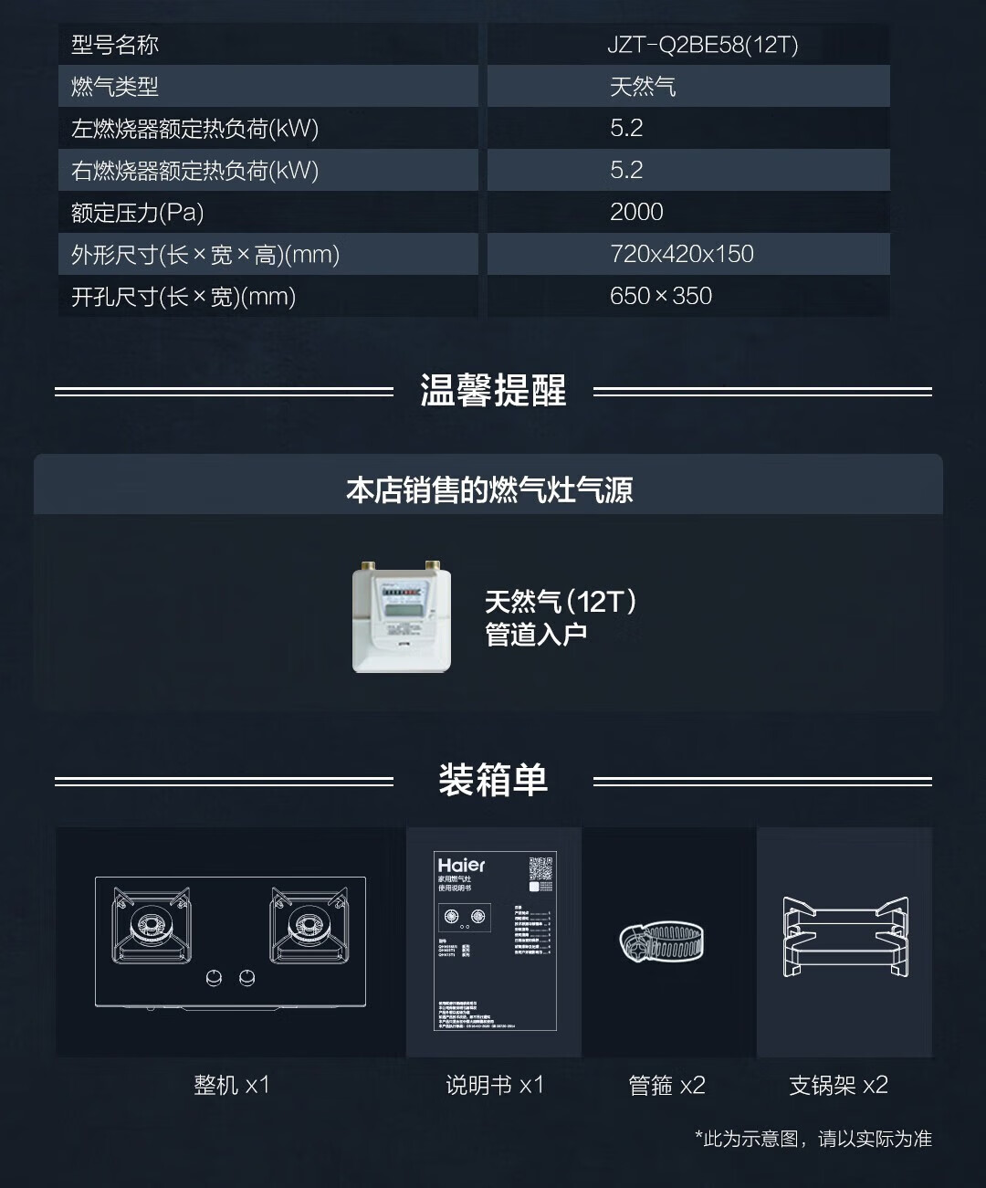 海尔联动灶燃气灶台嵌两用嵌入式5.2kw大火力天然气猛火双灶智能熄火保护宽频JZT-Q2BE58(12T)