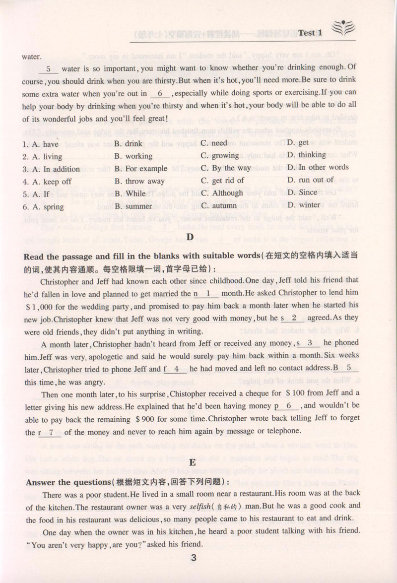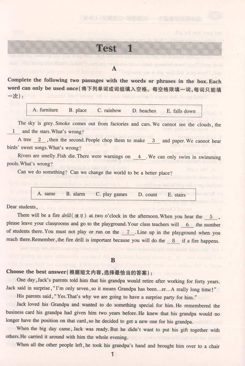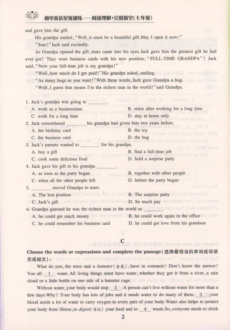 交大之星 初中英语星级训练 英语阅读理解+完形填空 第5版七年级英语完形填空 英语完形填空阅读理解 7年级英语阅读理解