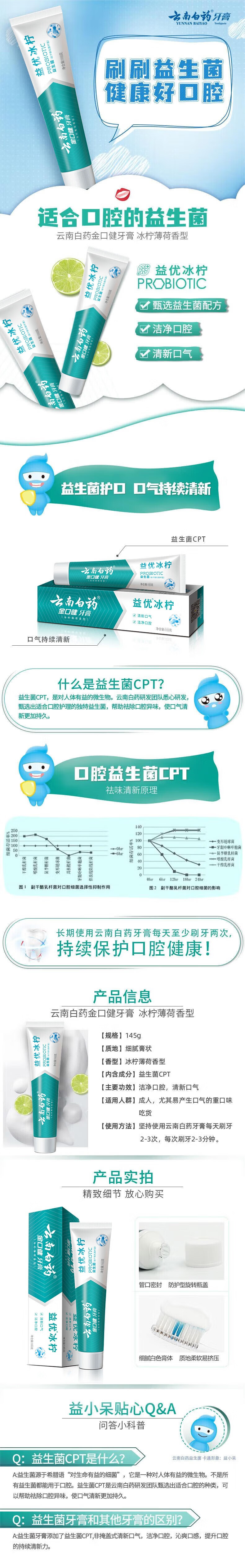 云南白药金口健牙膏 益优清新冰柠薄荷型145g/支