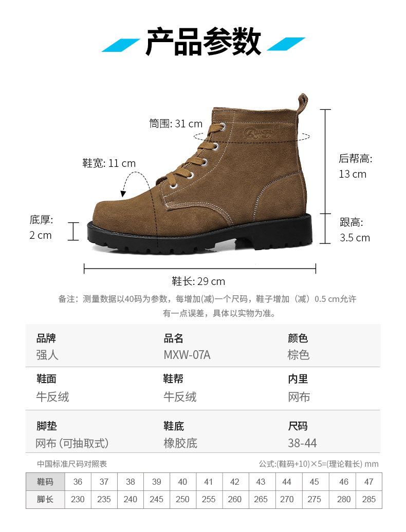 3515强人男鞋反绒皮大头鞋男高帮耐磨劳保鞋圆头户外工作鞋干活鞋