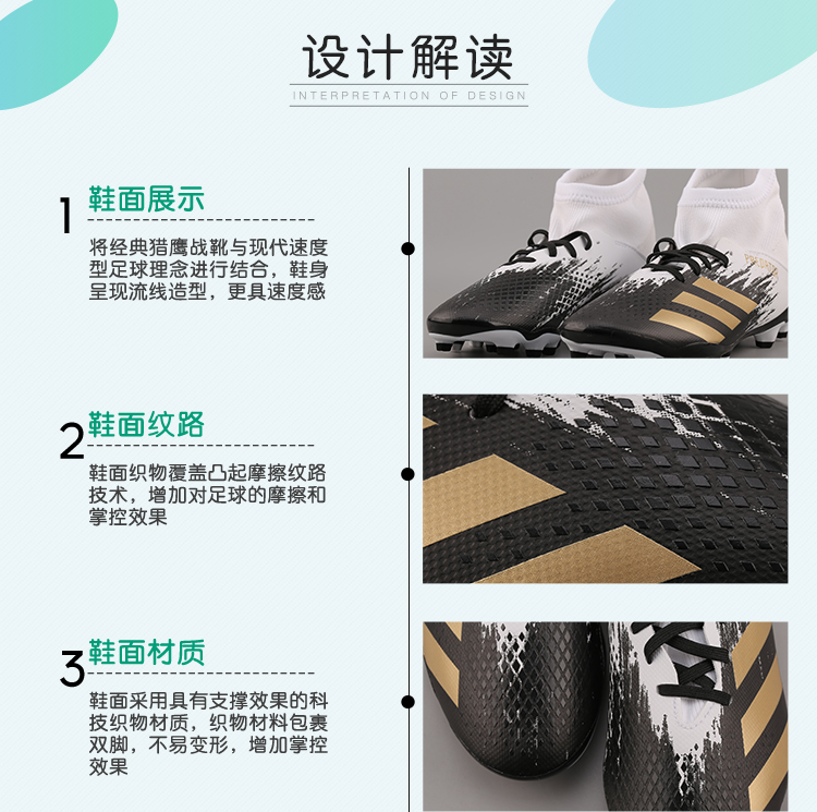 小李子正品ADIDAS阿迪达斯猎鹰20.3中端MG短钉J儿童足球鞋FW9219