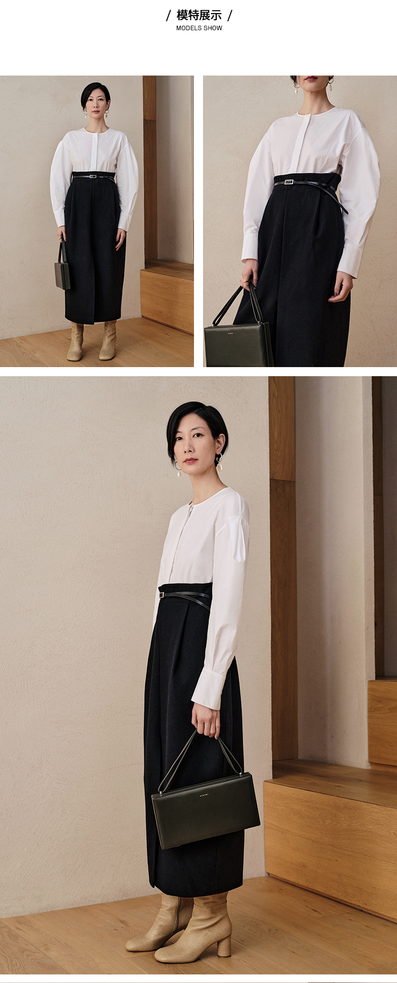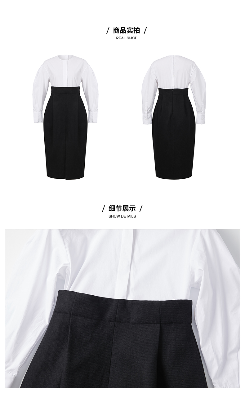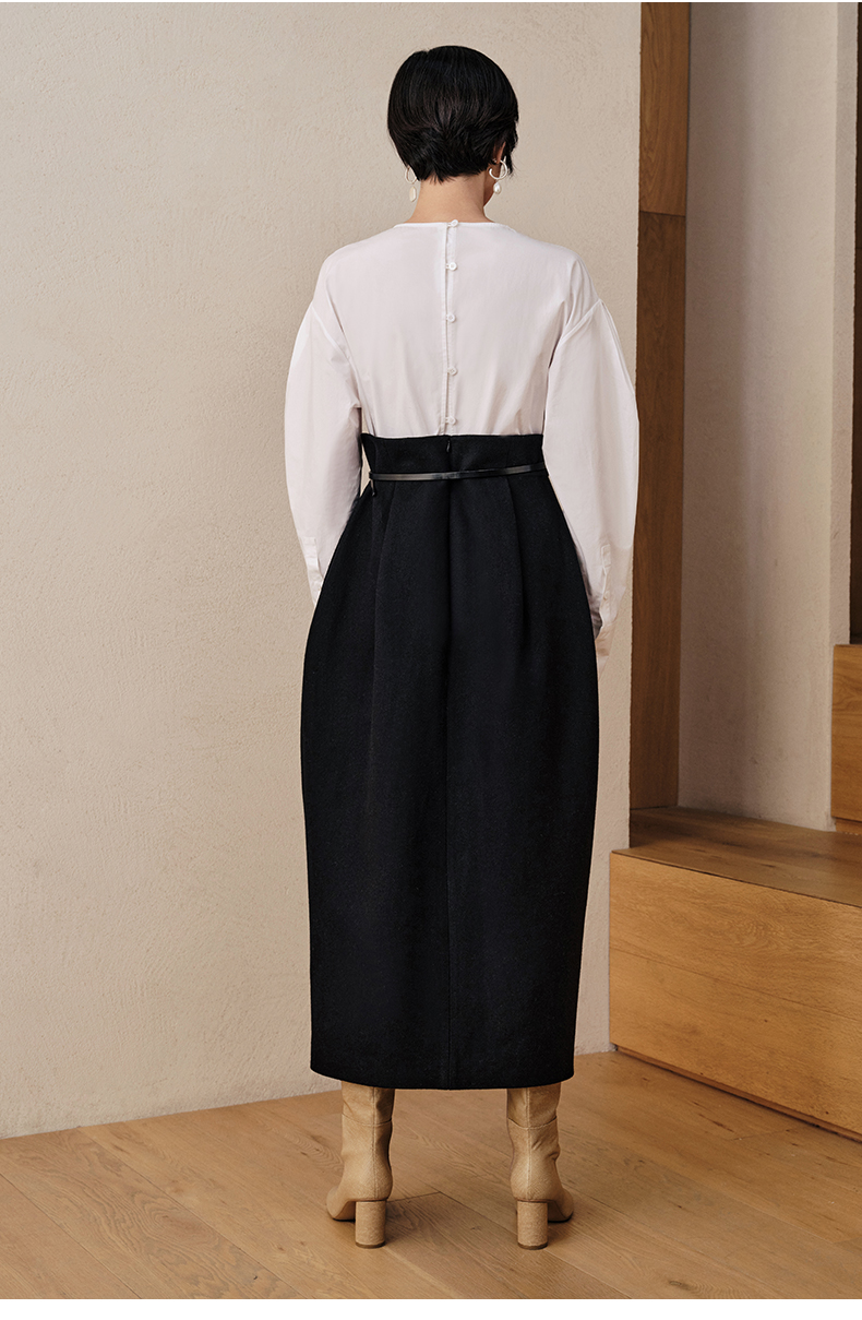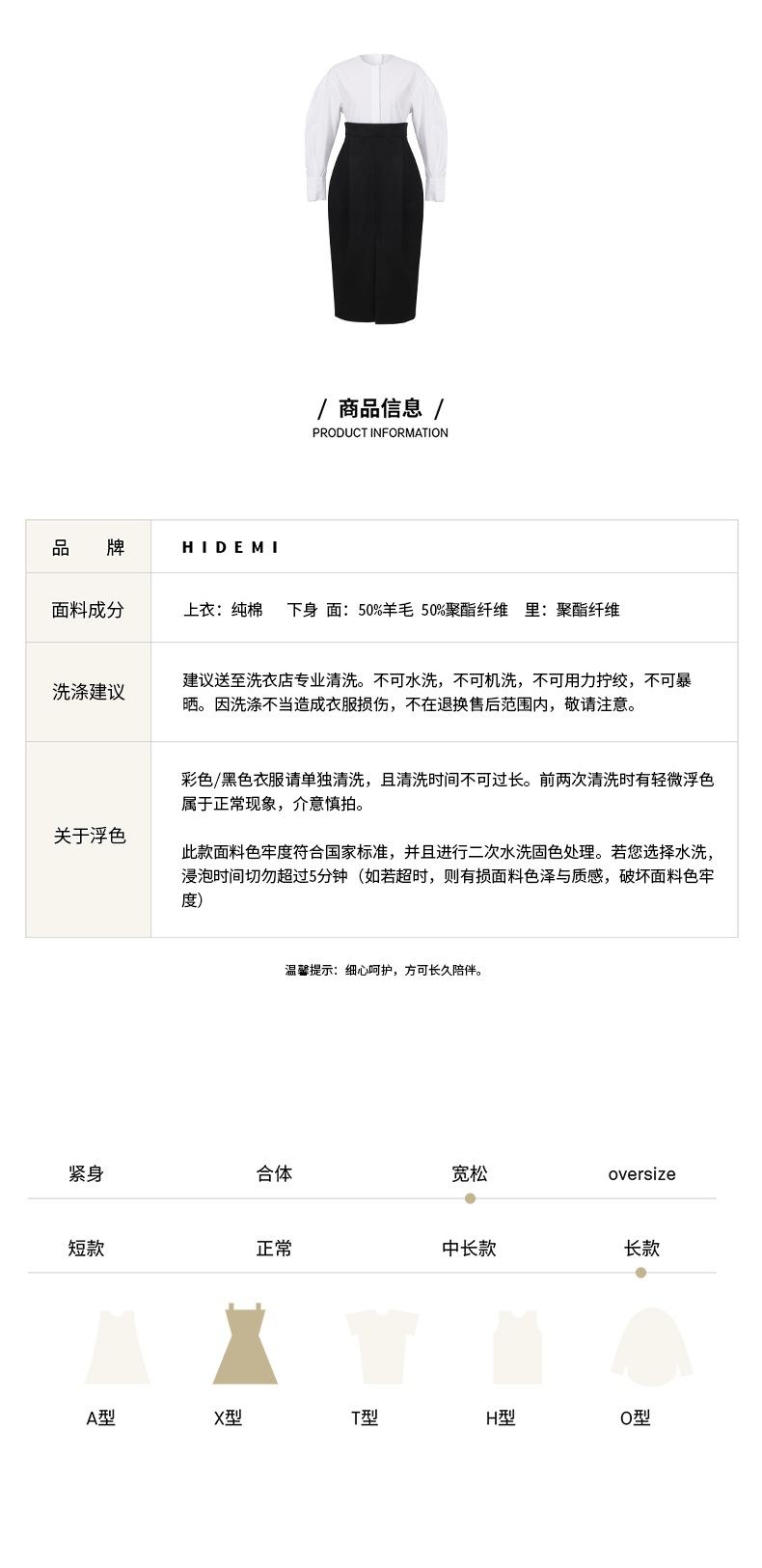 HIDEMI假两件衬衫拼接毛呢廓形轻礼服连衣裙