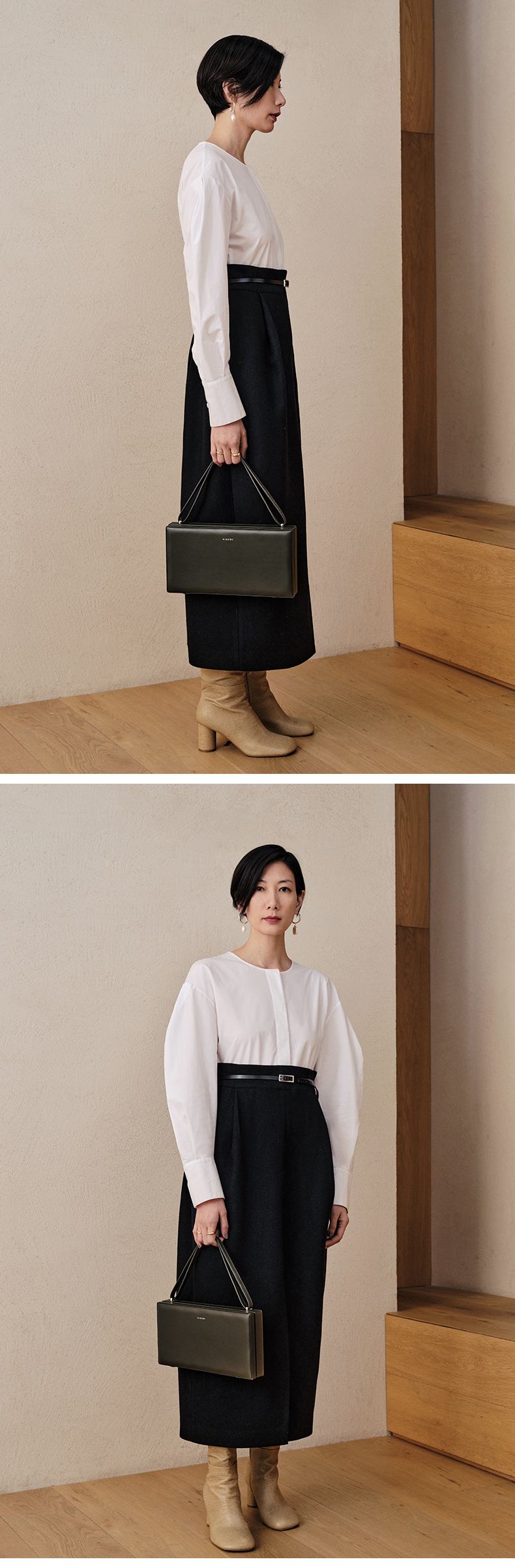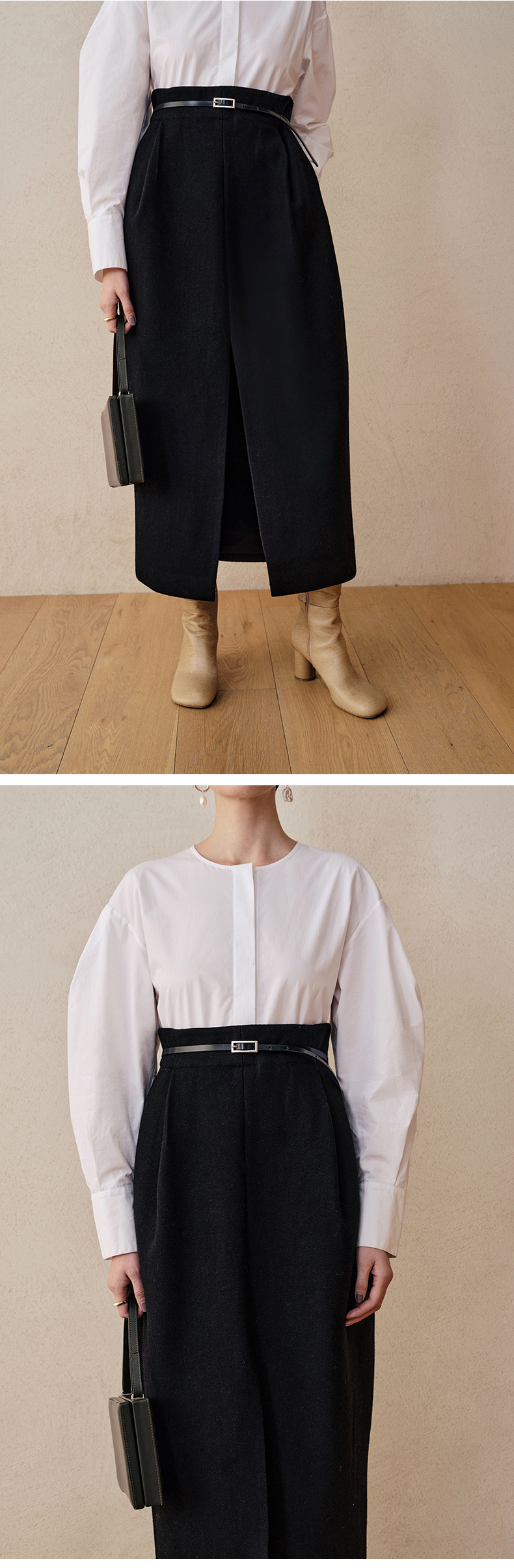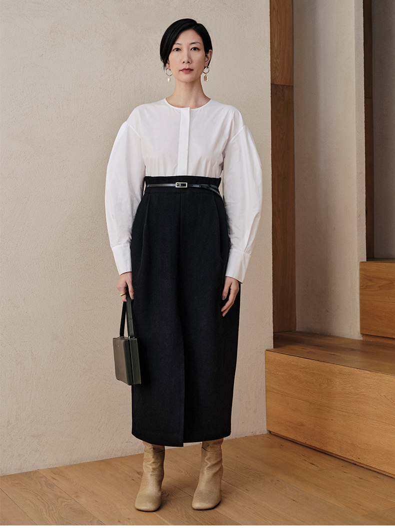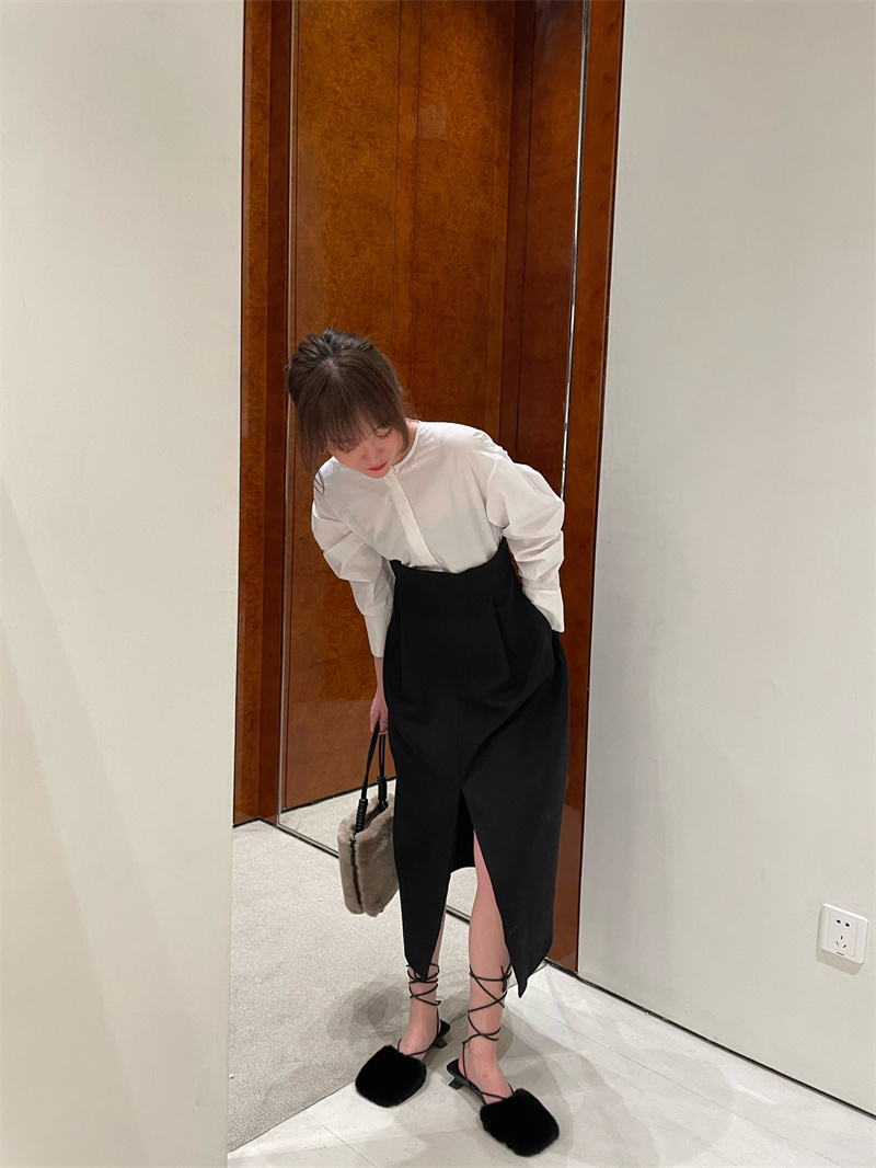 HIDEMI假两件衬衫拼接毛呢廓形轻礼服连衣裙