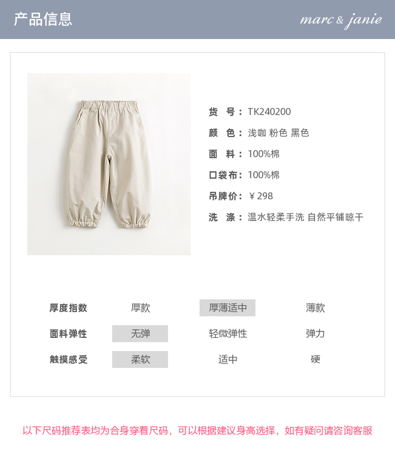 马克珍妮男女童休闲百搭束脚裤运动裤儿童纯棉裤子春装新款240200