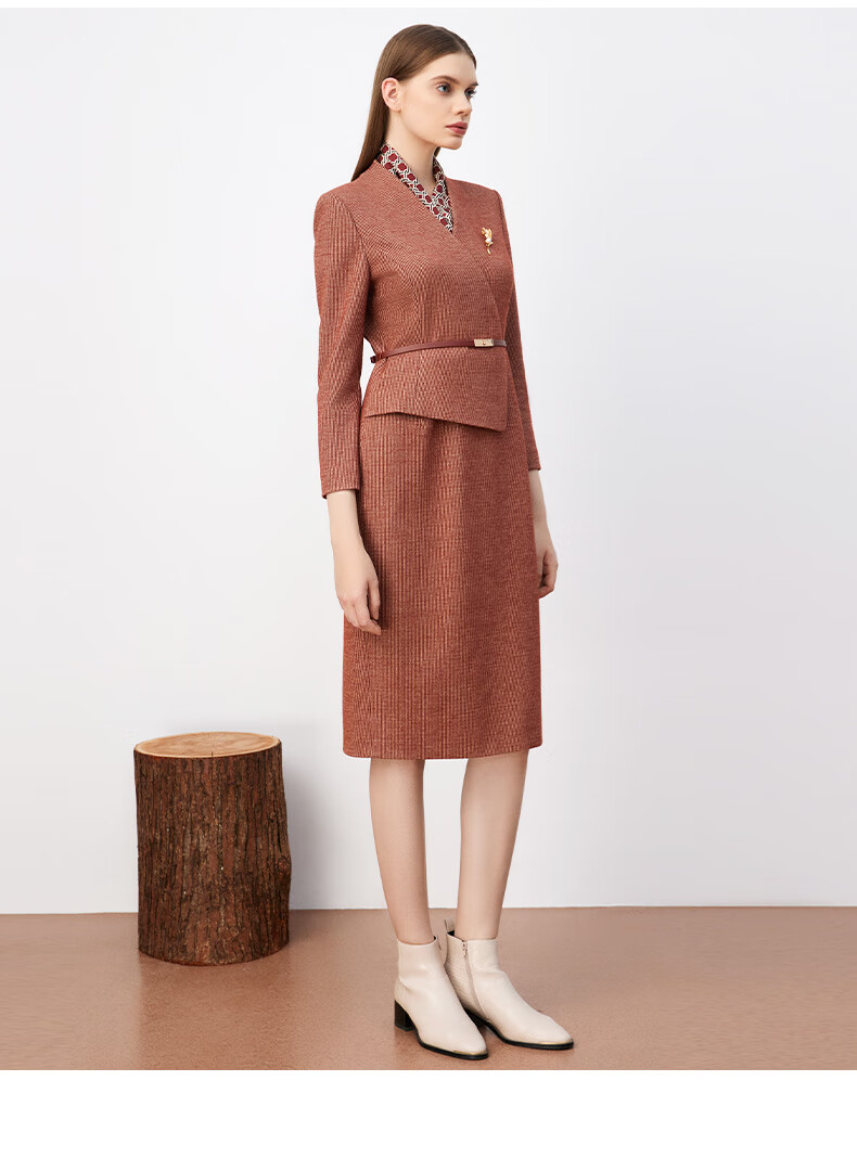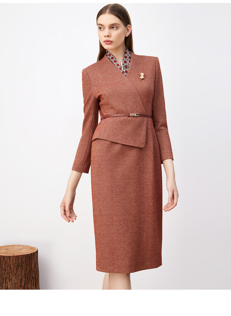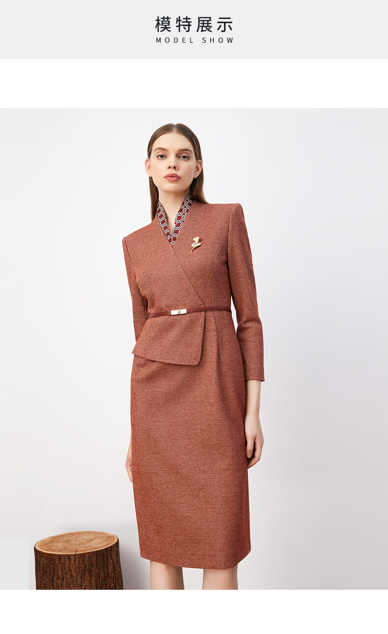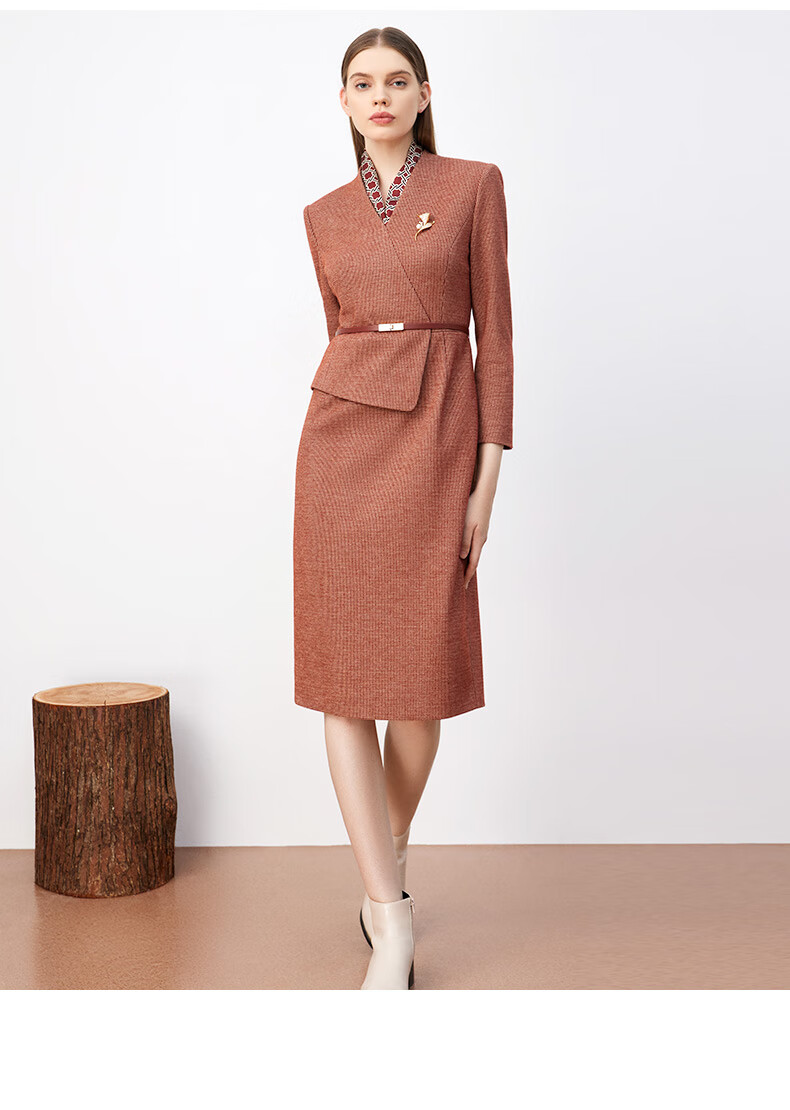 皮尔卡丹女装连衣裙都市职业修身通勤假两件连衣裙P3434E3867J3