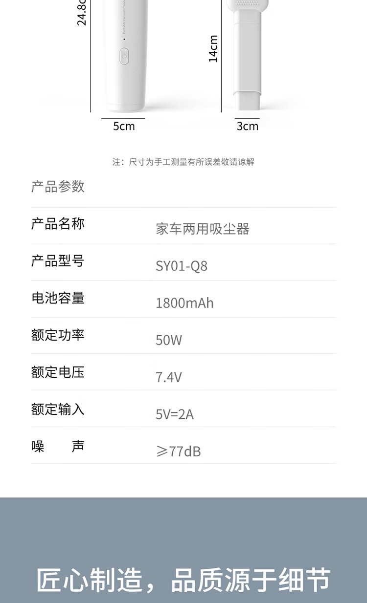 Abereve 艾贝丽吸尘器手持家用车载吸尘器宠物家庭适用SY01-Q8 白色