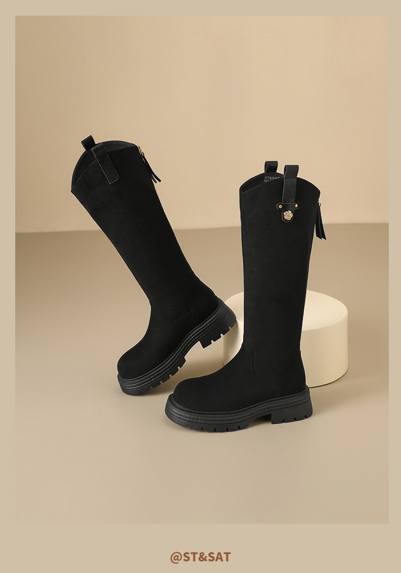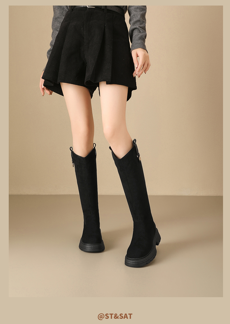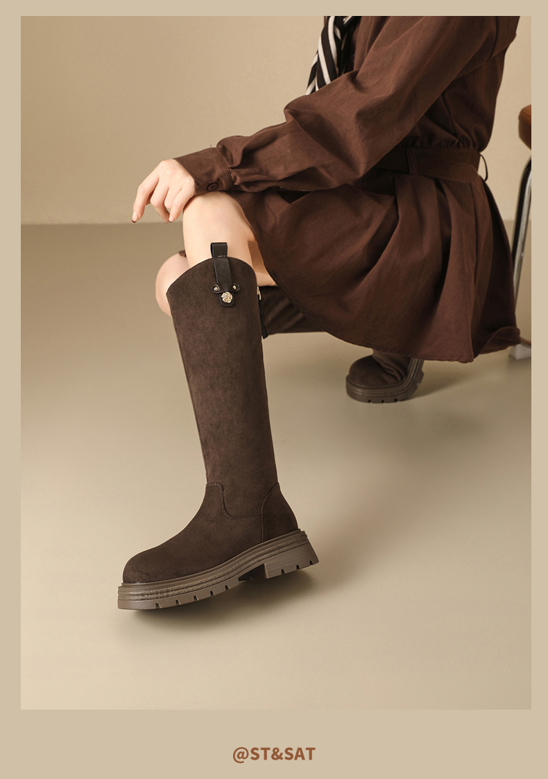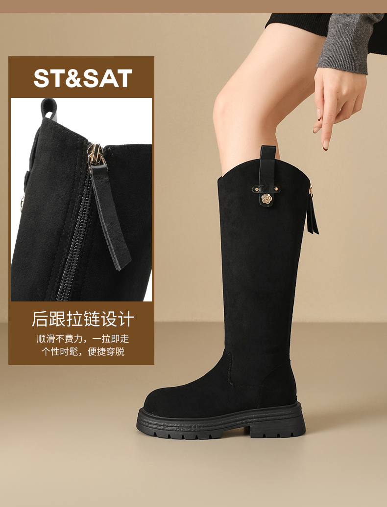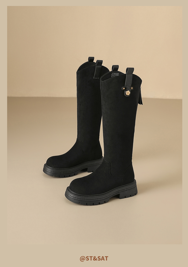 【保暖绒里】星期六时尚通勤百搭山茶花扣带长筒靴SSD4119T6M