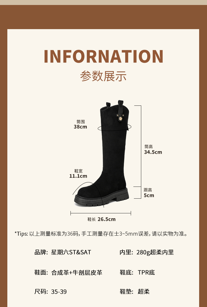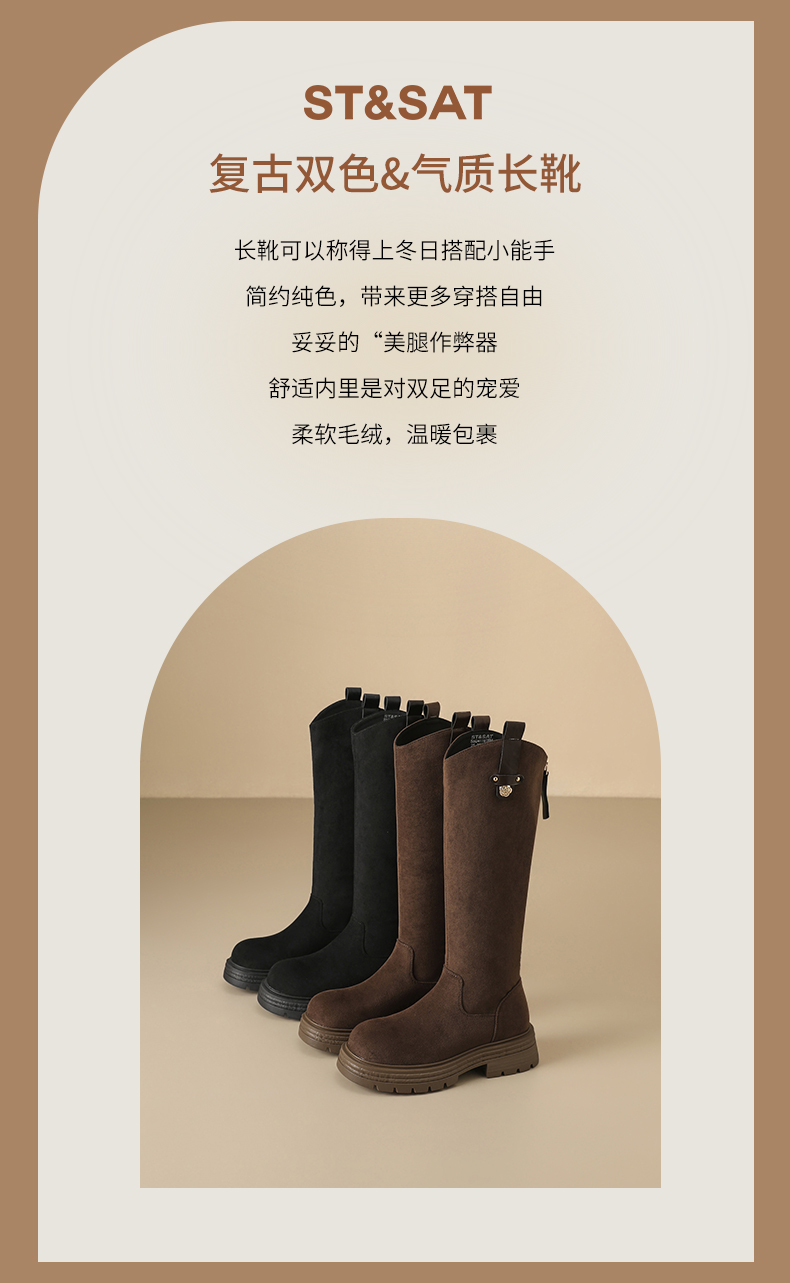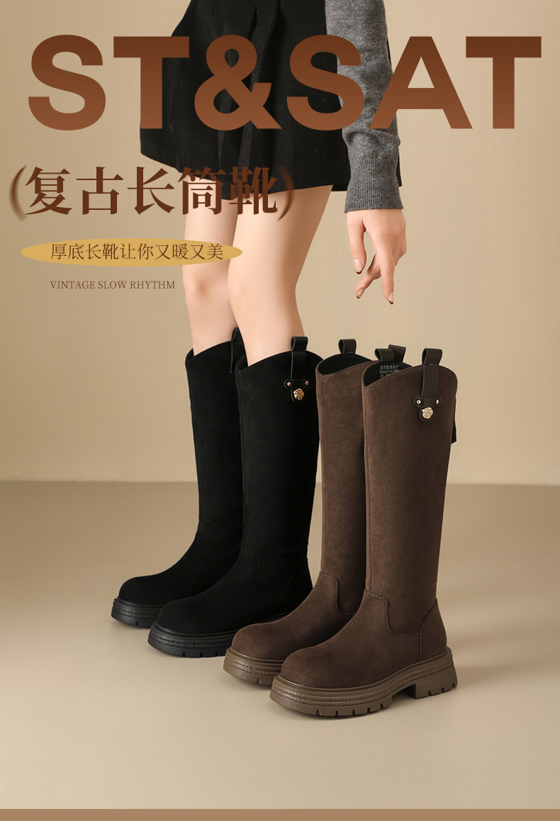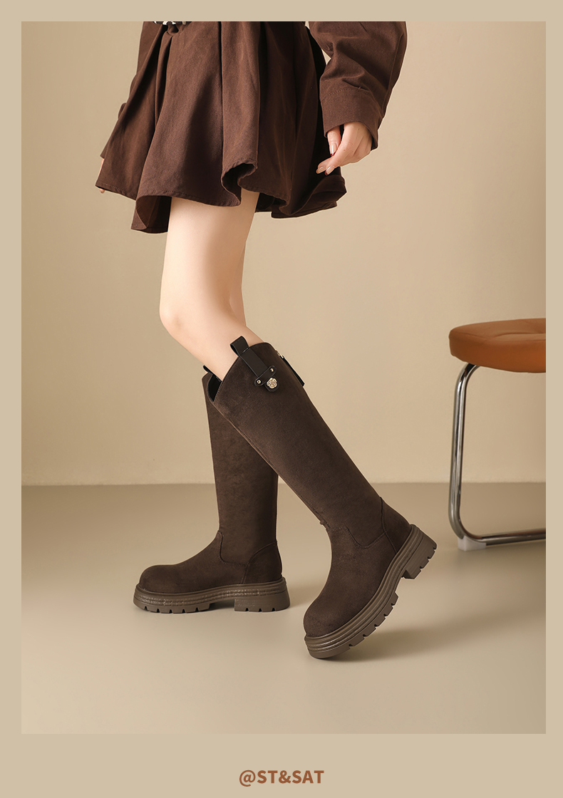 【保暖绒里】星期六时尚通勤百搭山茶花扣带长筒靴SSD4119T6M