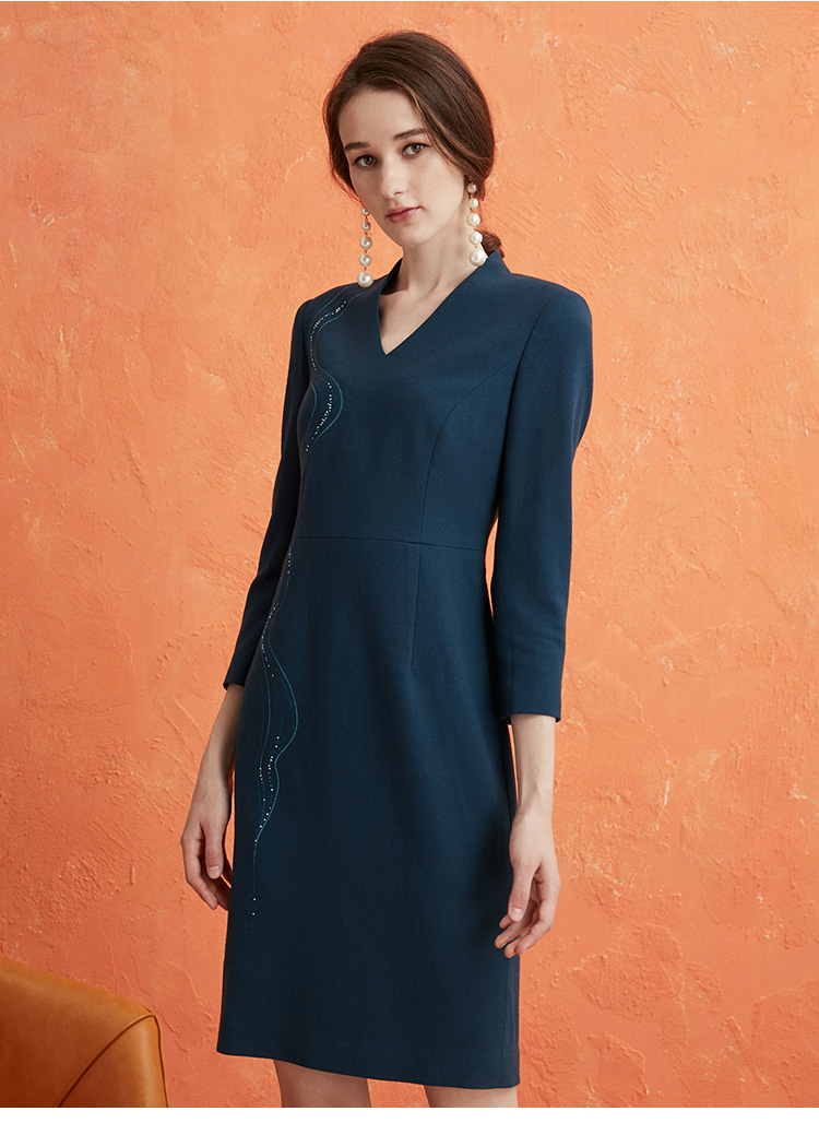 皮尔卡丹女装通勤淑女百搭修身淑女连衣裙P0318DL14L0