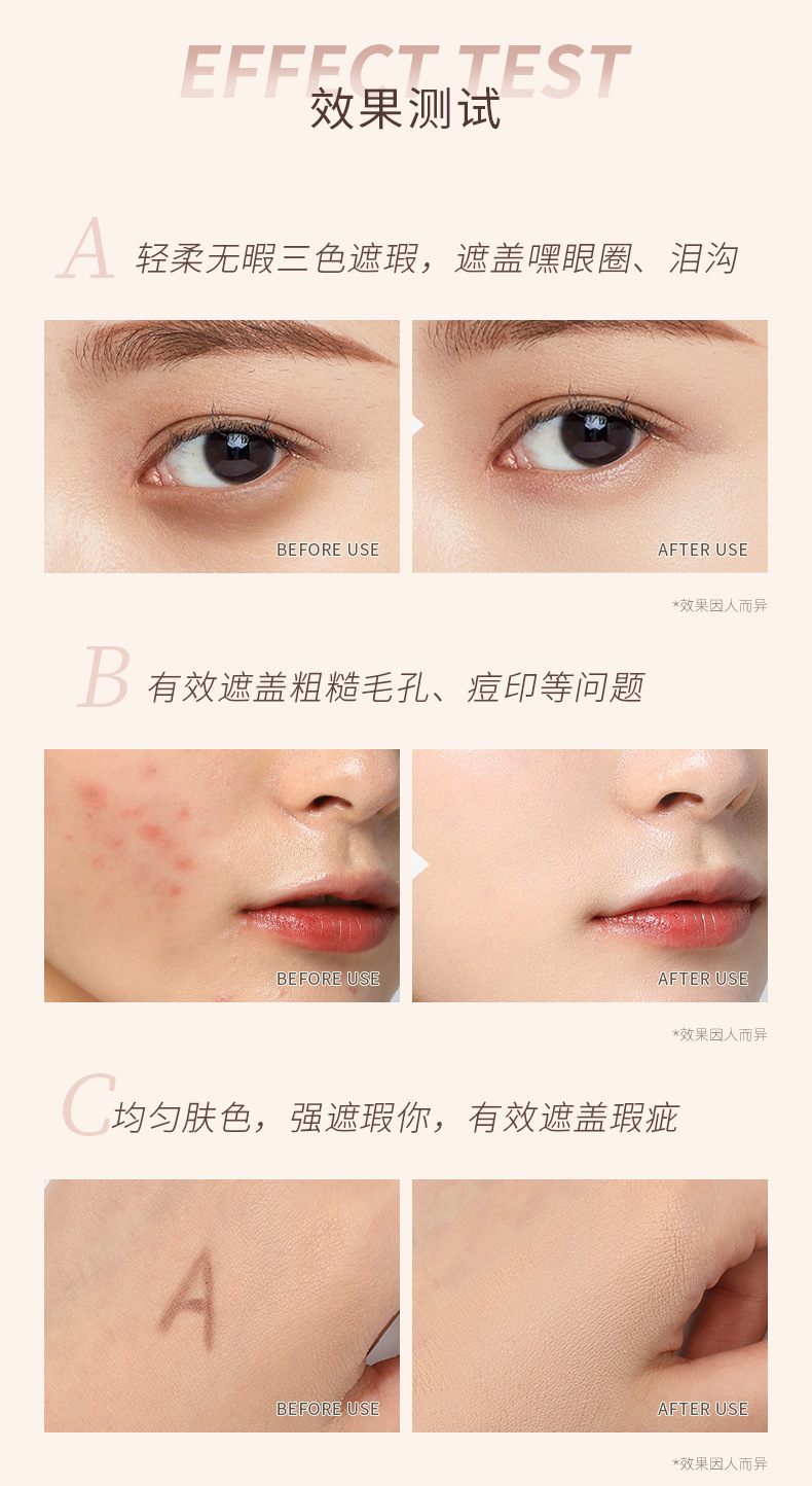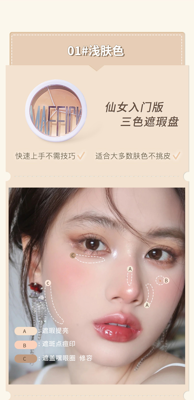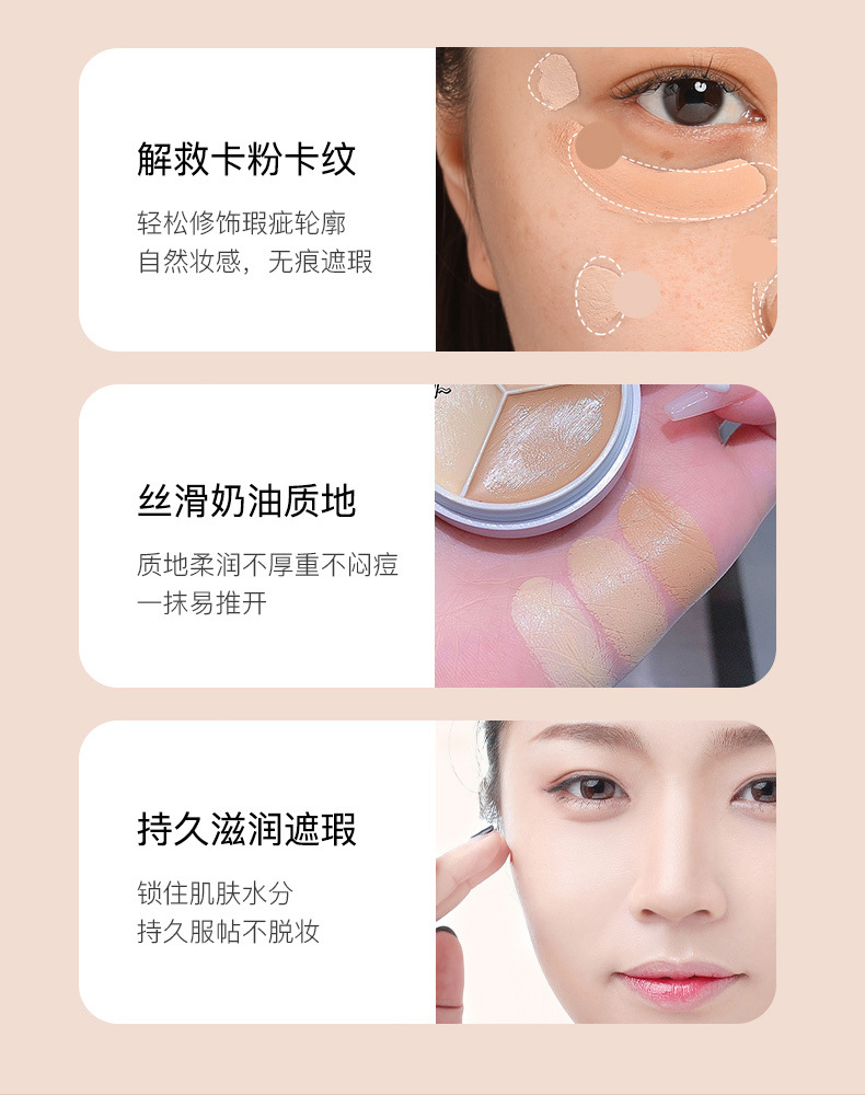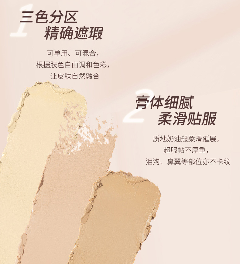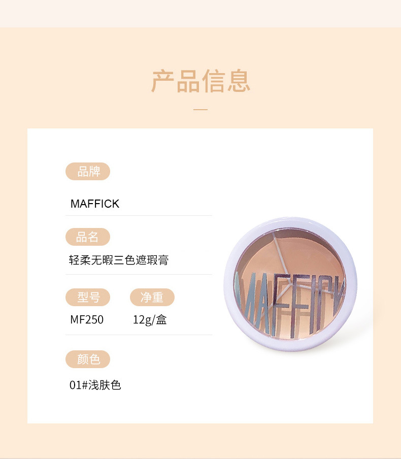 【买就送,送遮瑕刷!】MAFFICK轻柔无瑕三色遮瑕膏遮盖脸部斑点痘印痘肌干皮油皮MF250