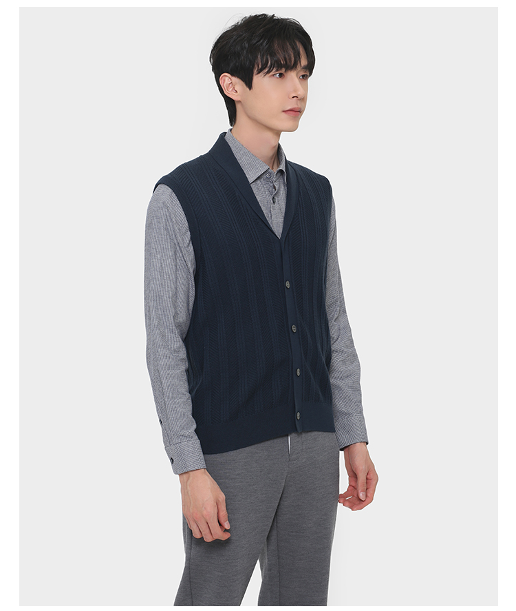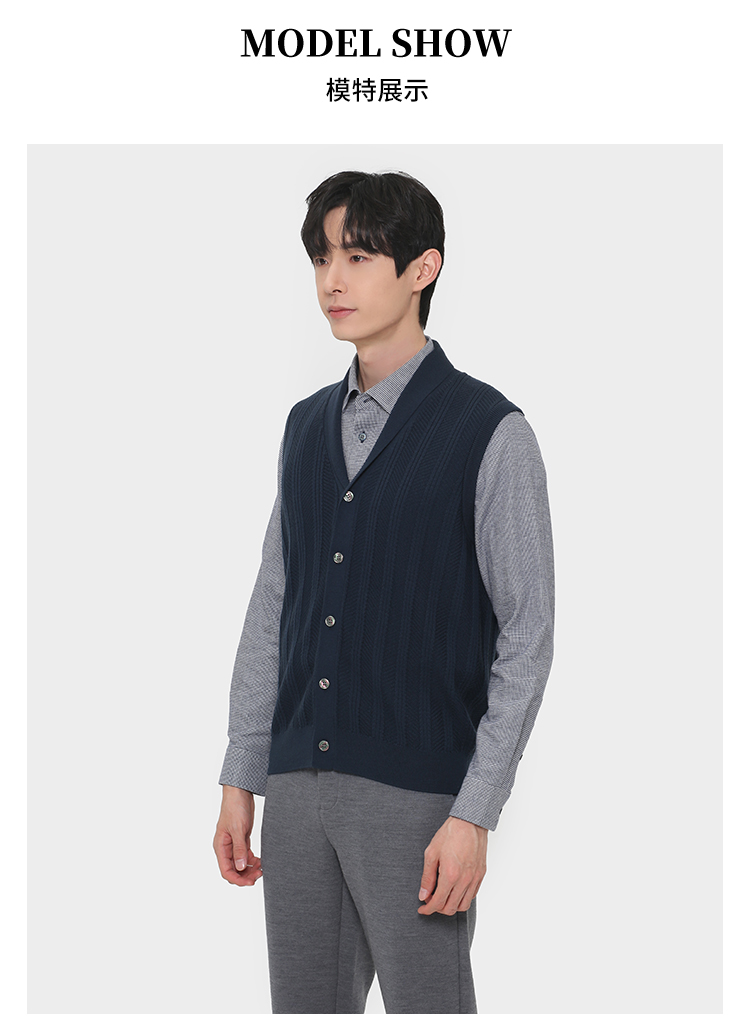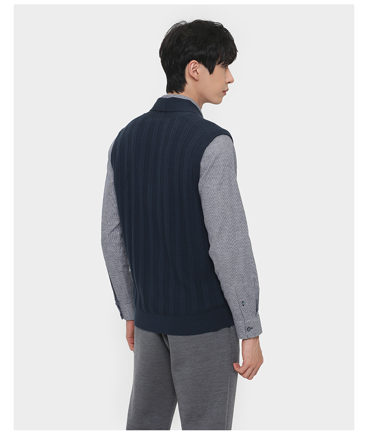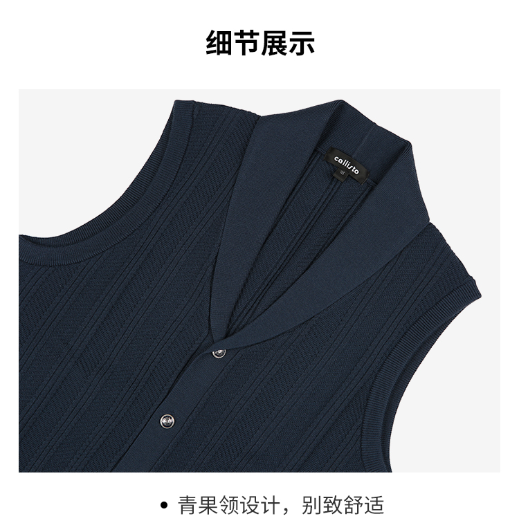 callisto深蓝电脑机提花羊毛青果领针织马夹 FRVST003C