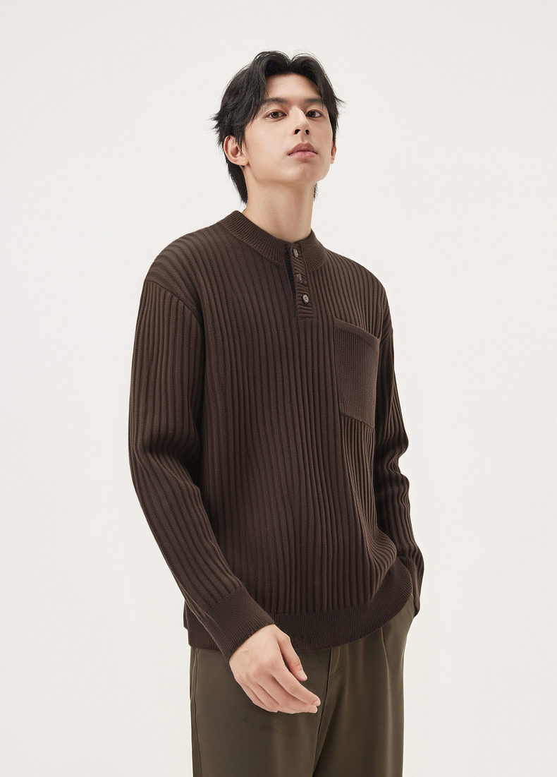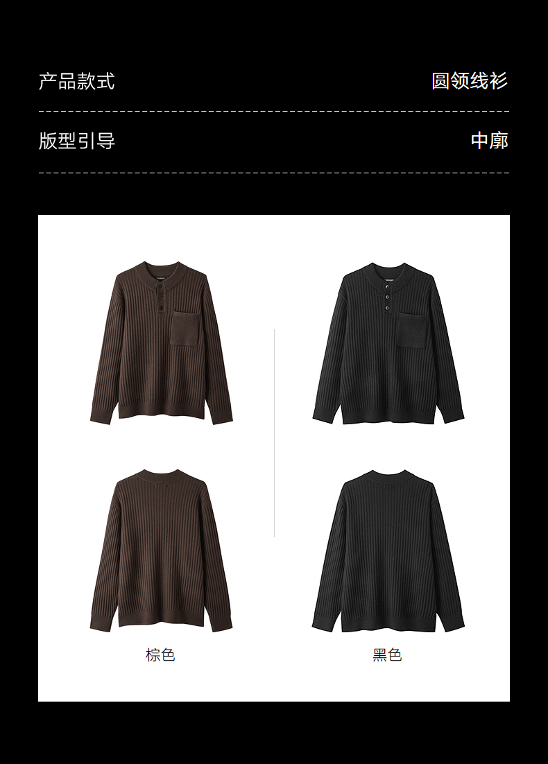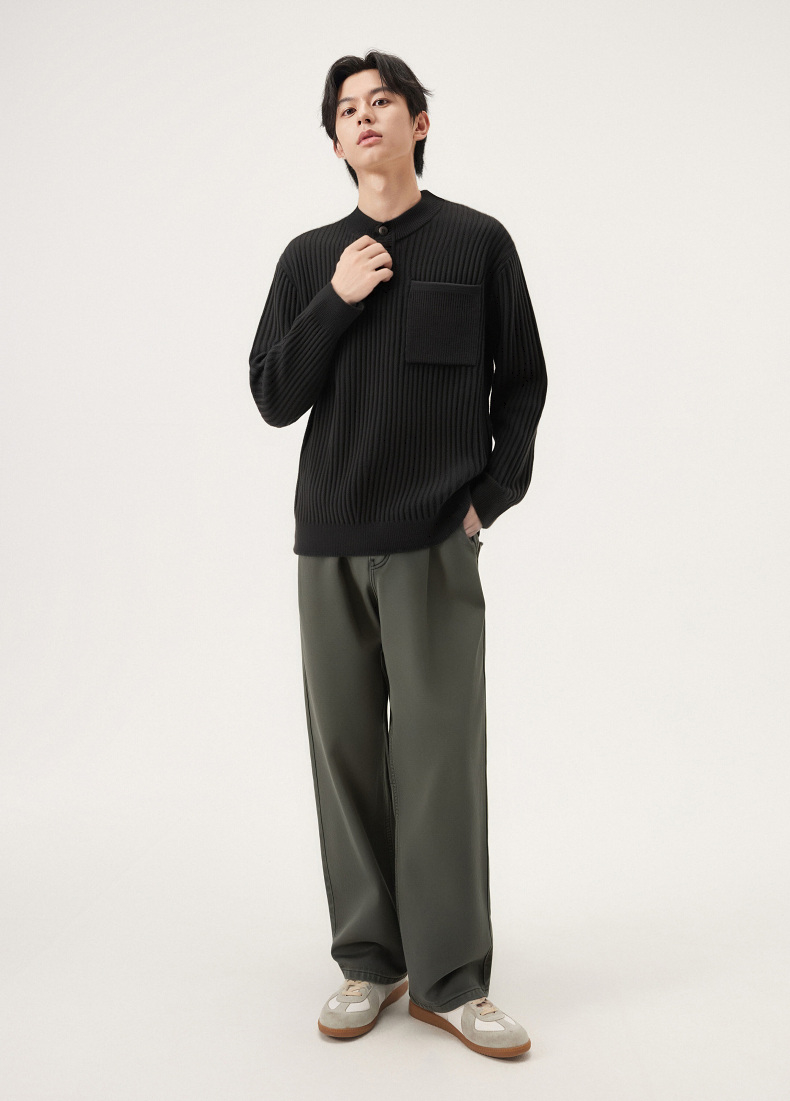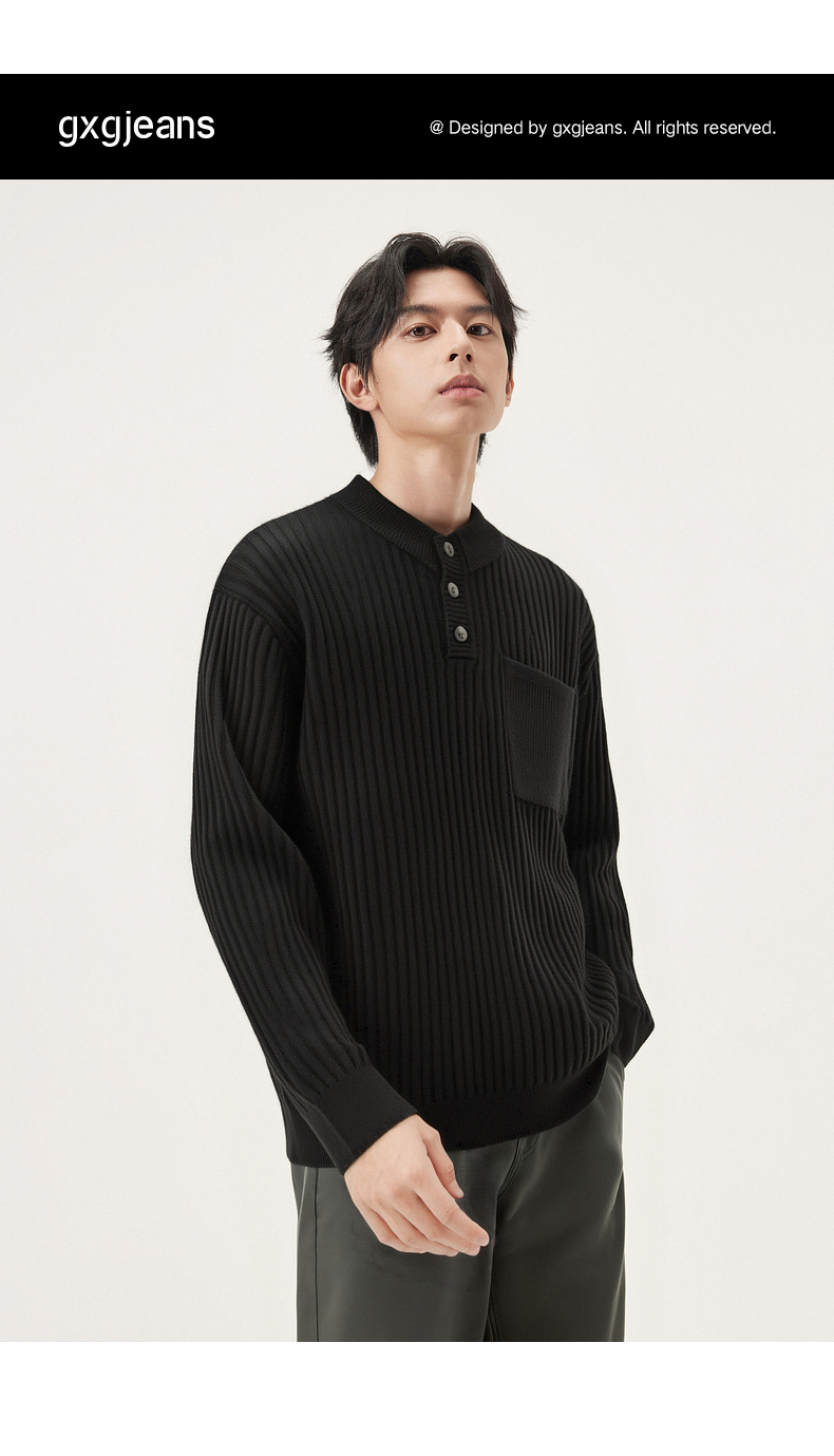 gxg.jeans男装 多色亨利领坑条肌理含羊毛宽松毛衣线衫 25冬新品