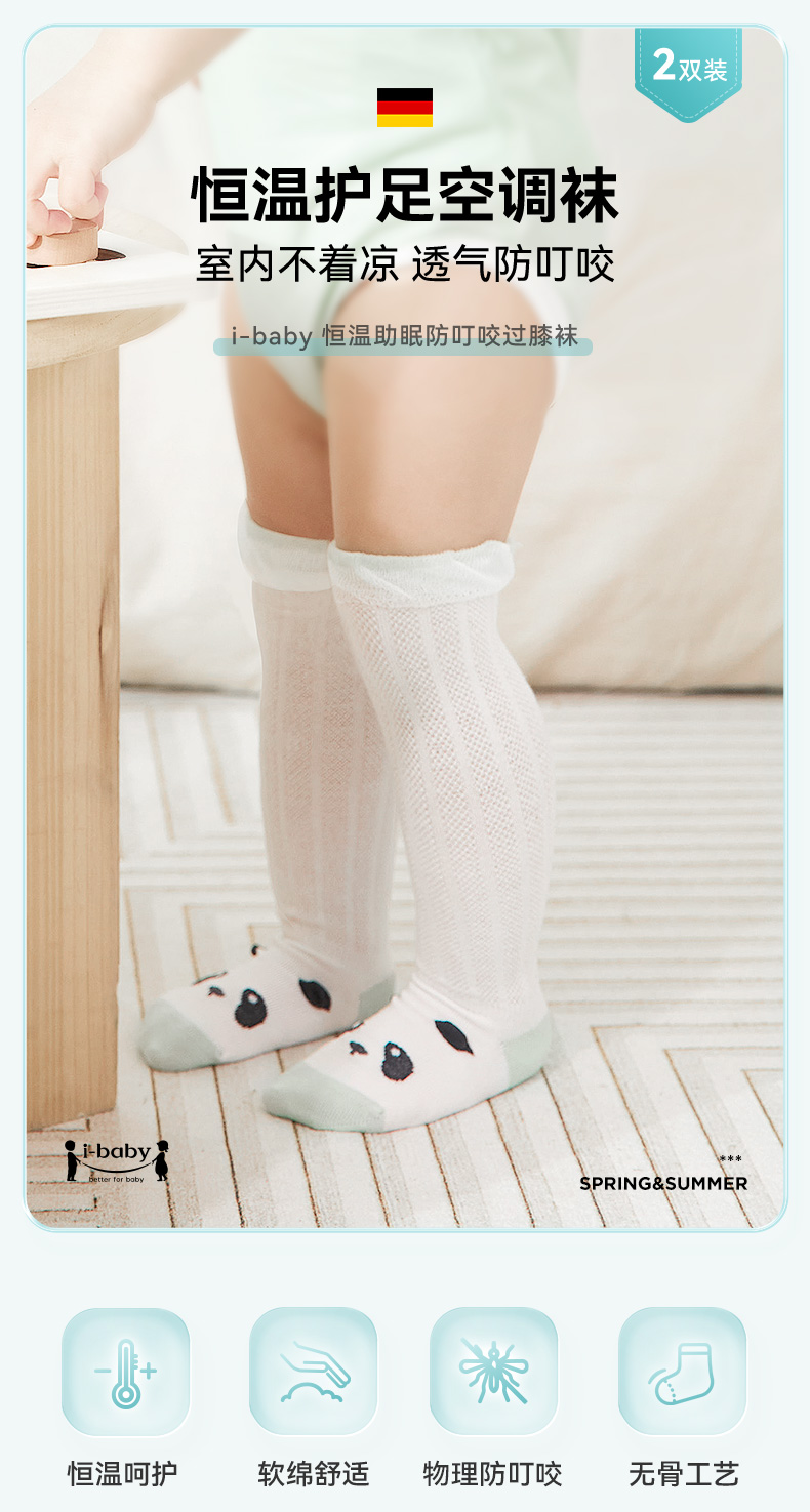 i-baby/英伦宝贝 outlast恒温深睡过膝袜(2双装)过膝袜长筒袜春秋夏季薄款防叮咬
