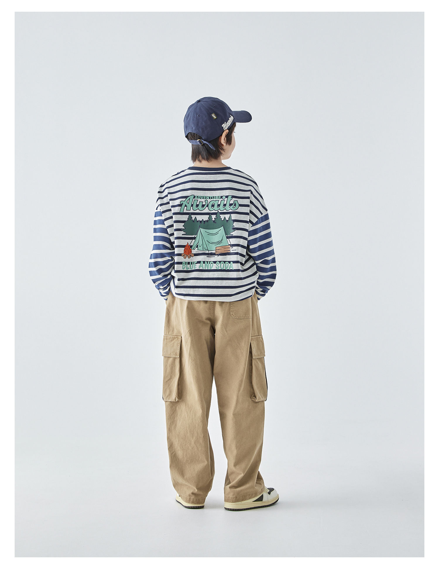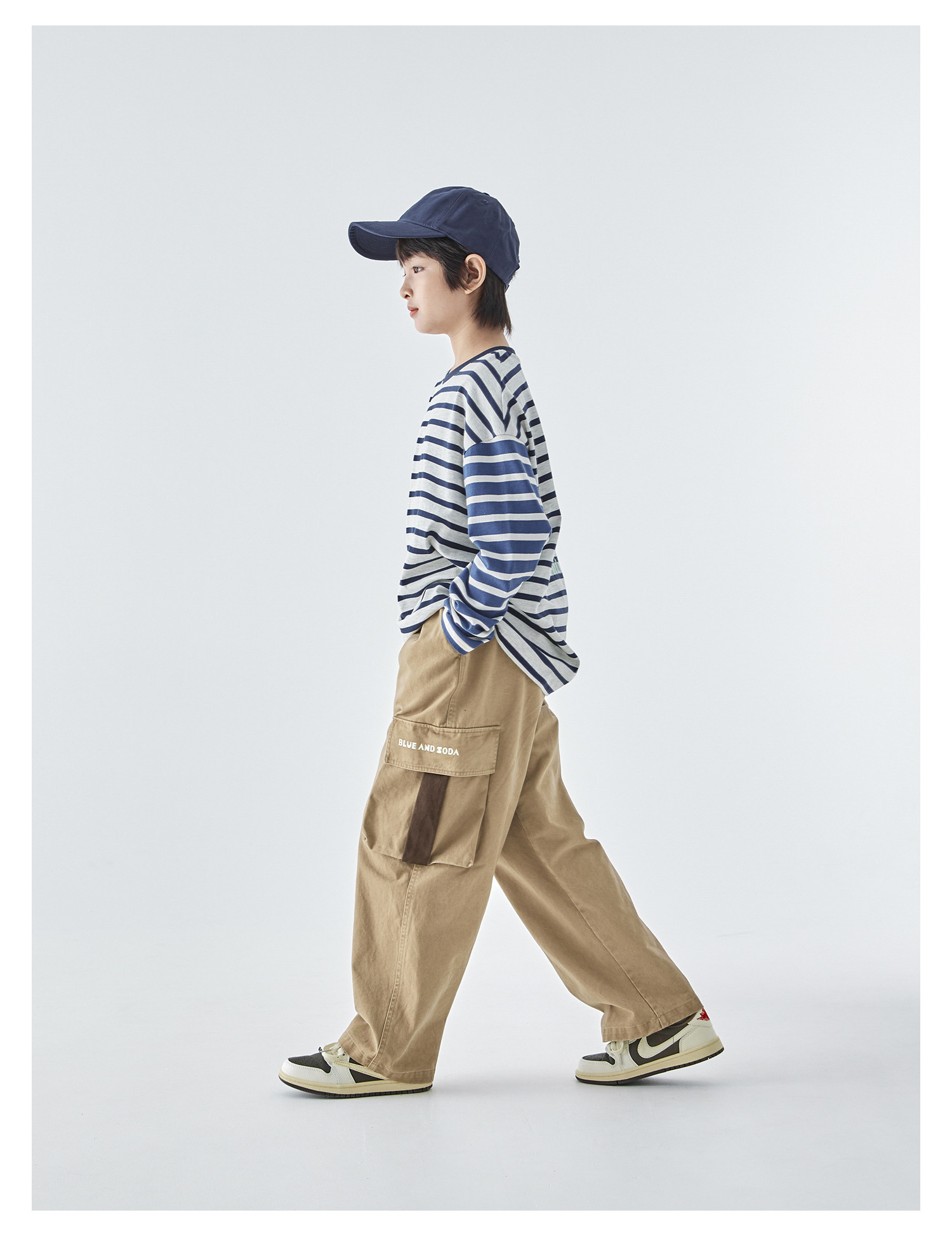 蓝汽水25年秋季新款亲子装中大男童复古工装裤经典直筒版型休闲裤