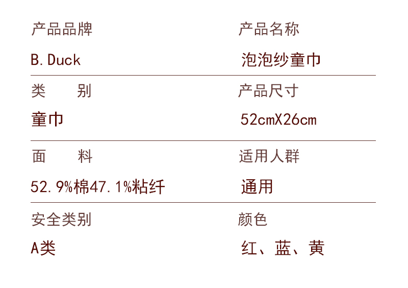 B.Duck小黄鸭泡泡纱可爱鸭儿童毛巾52*26cm 569