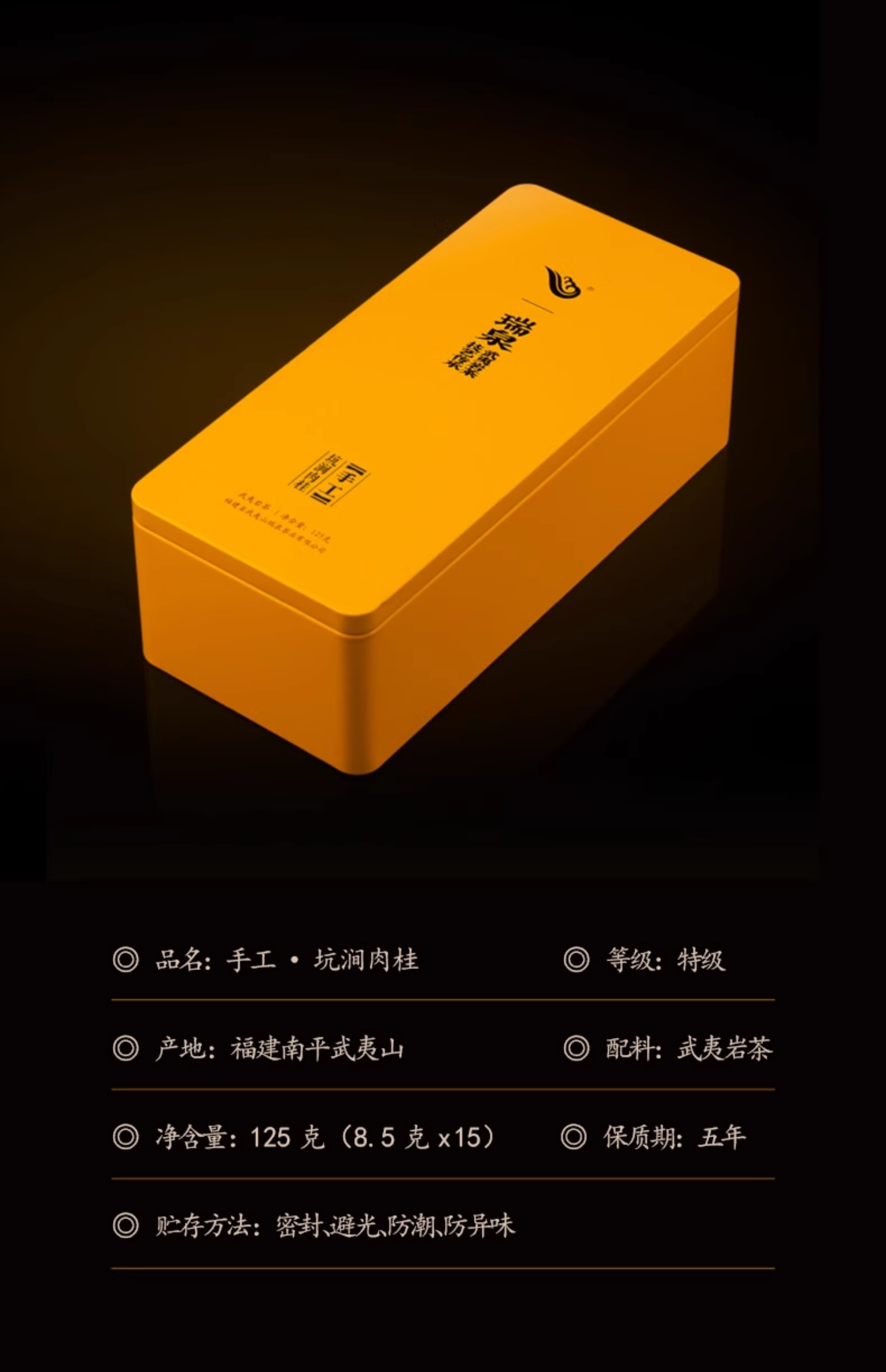 瑞泉 手工 坑涧肉桂 武夷岩茶 茶叶 礼盒 125g