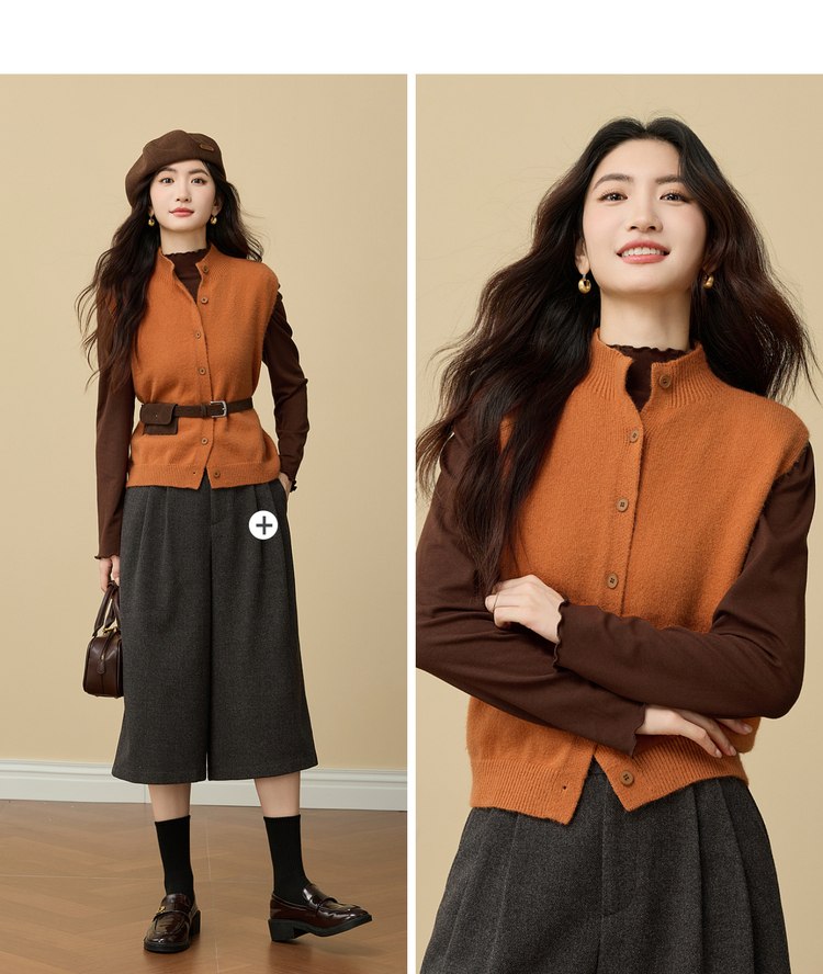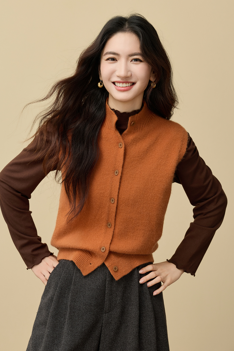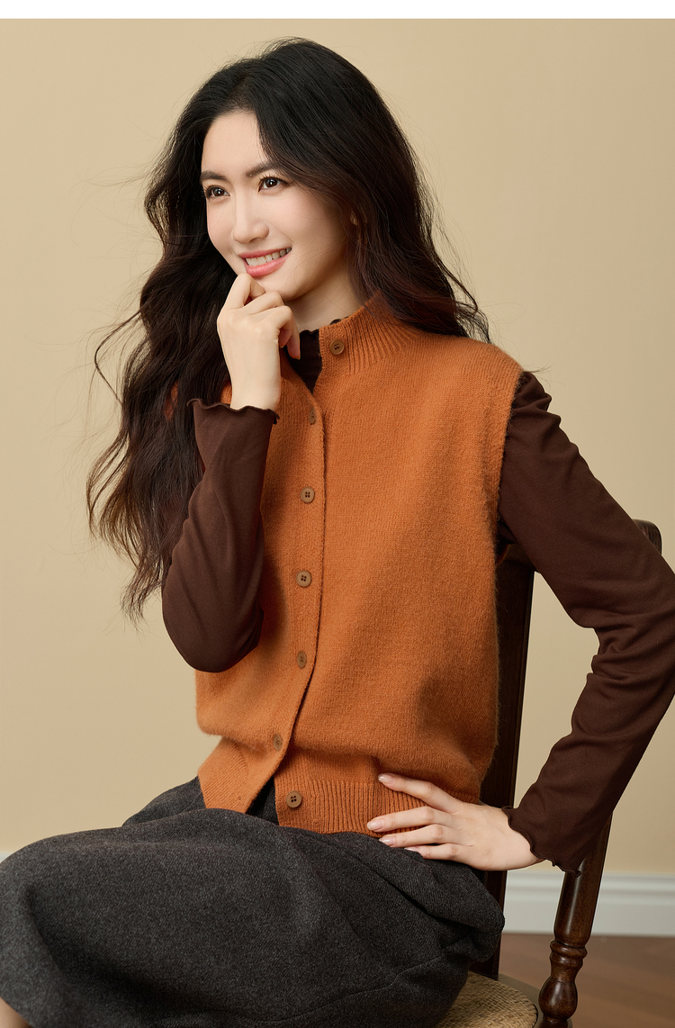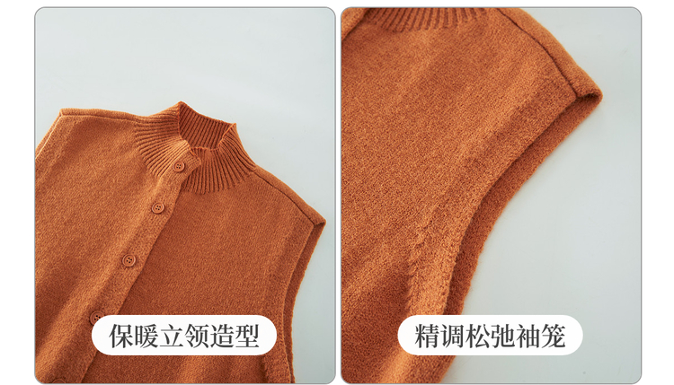 【11/19新品】熙世界琥珀橘色针织背心马甲女2025年秋冬新款单排扣无袖毛衣开衫