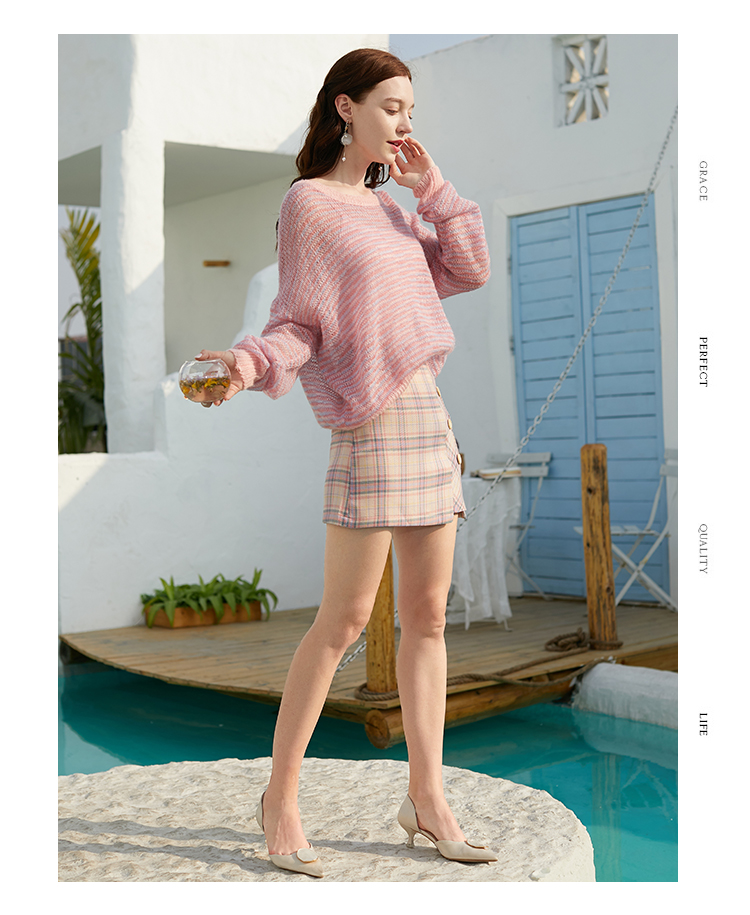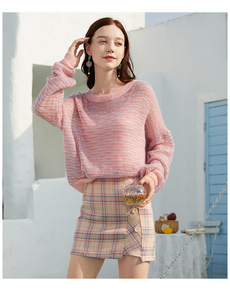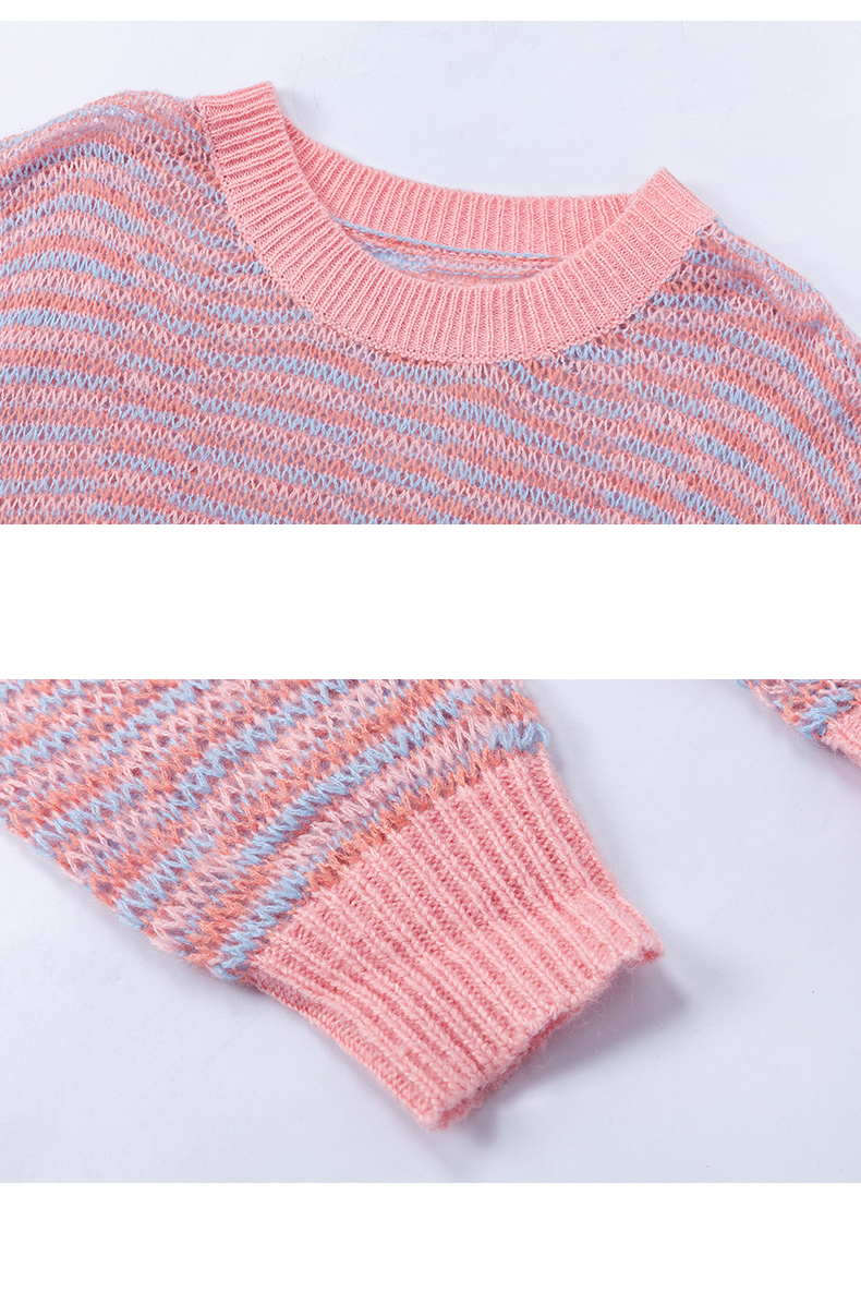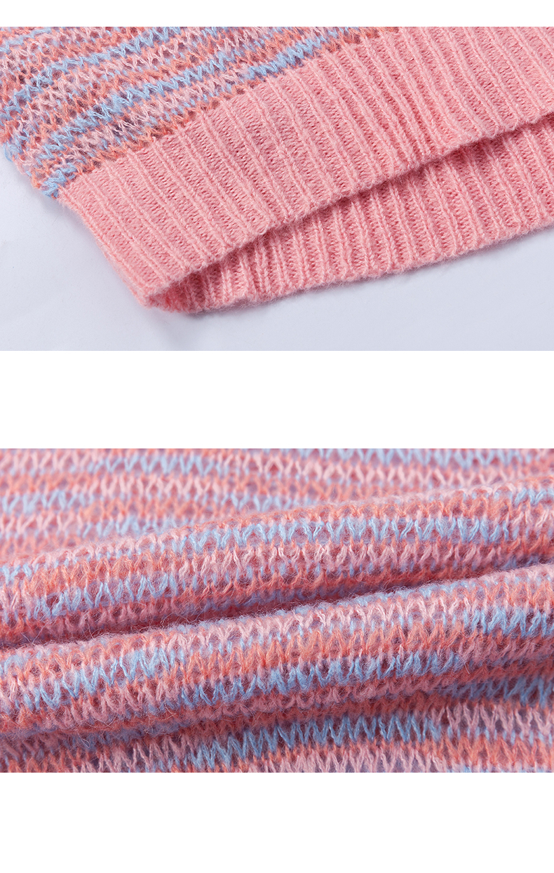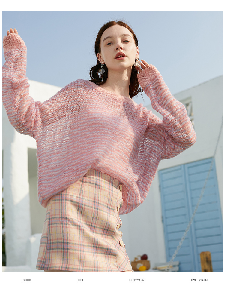 欧芮儿年春新款长袖慵懒风粉色毛衣女套头宽松内搭毛针织衫