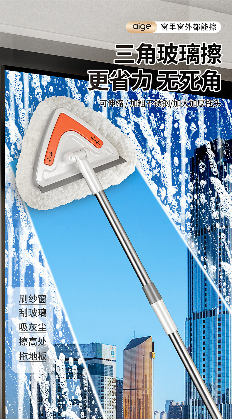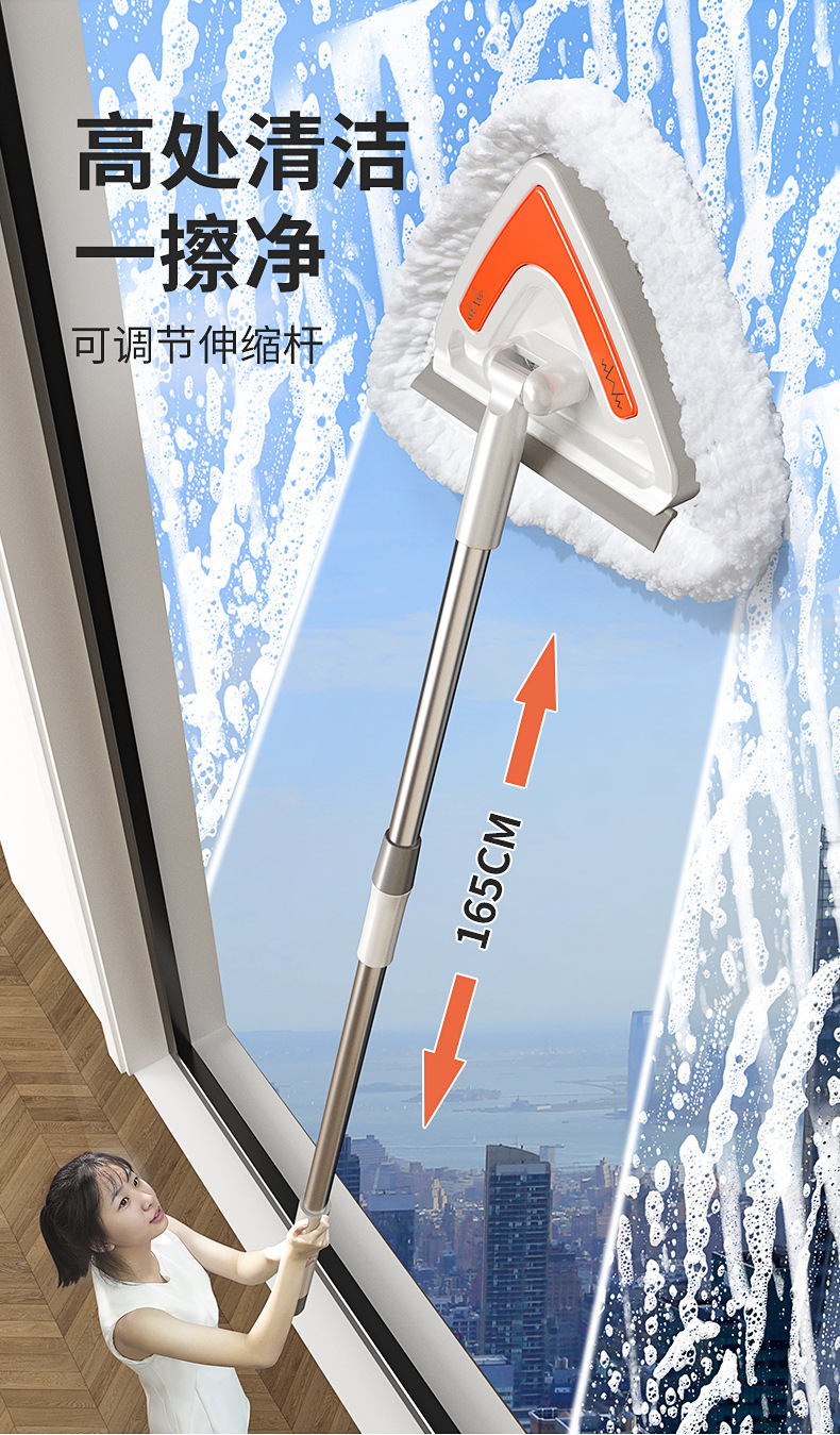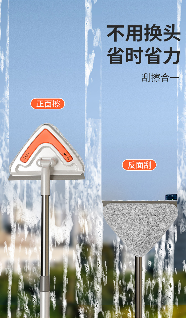 【正面擦 反面刮的玻璃擦 省时省力】窗里窗外都能擦的三角玻璃擦 刮擦合一 轻松擦外窗死角 可伸缩/加大加厚托头