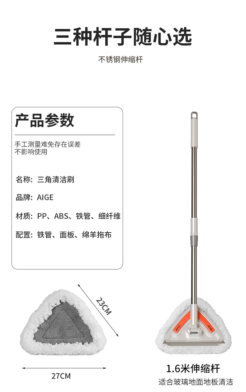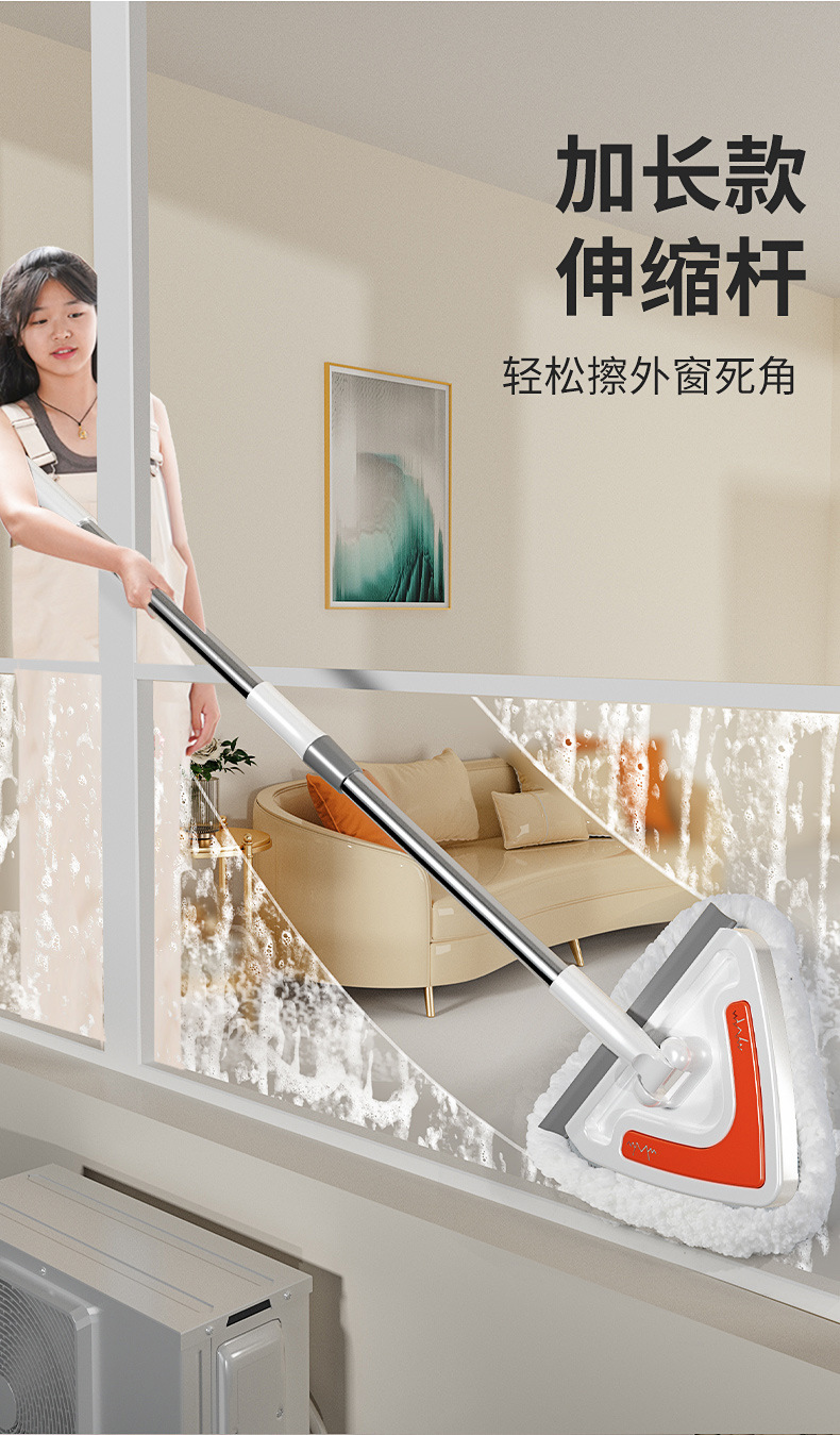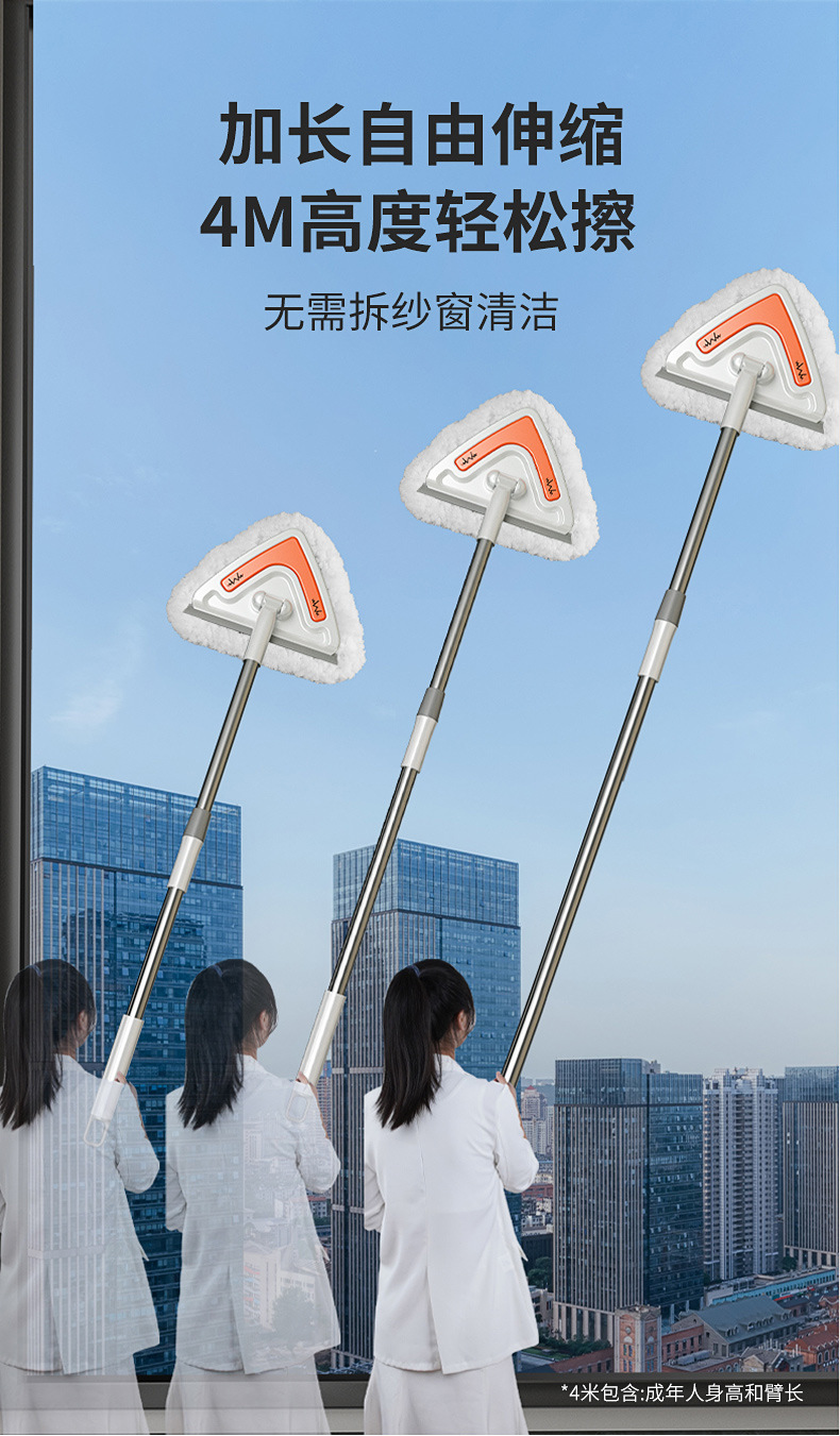 【正面擦 反面刮的玻璃擦 省时省力】窗里窗外都能擦的三角玻璃擦 刮擦合一 轻松擦外窗死角 可伸缩/加大加厚托头