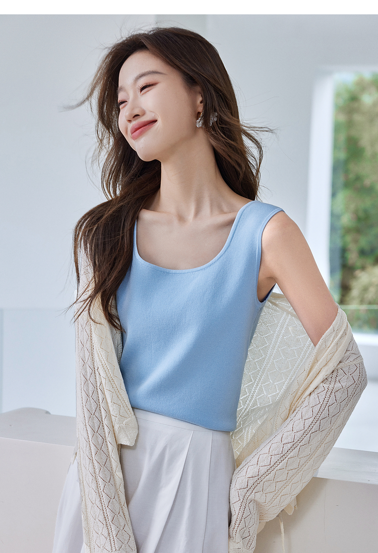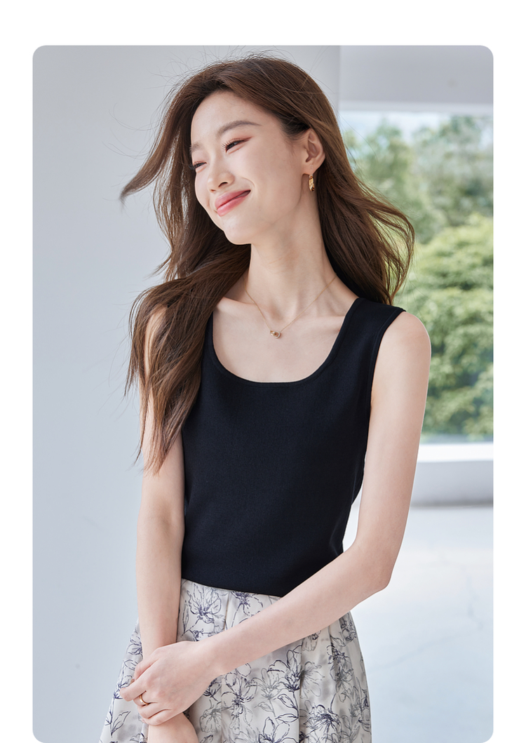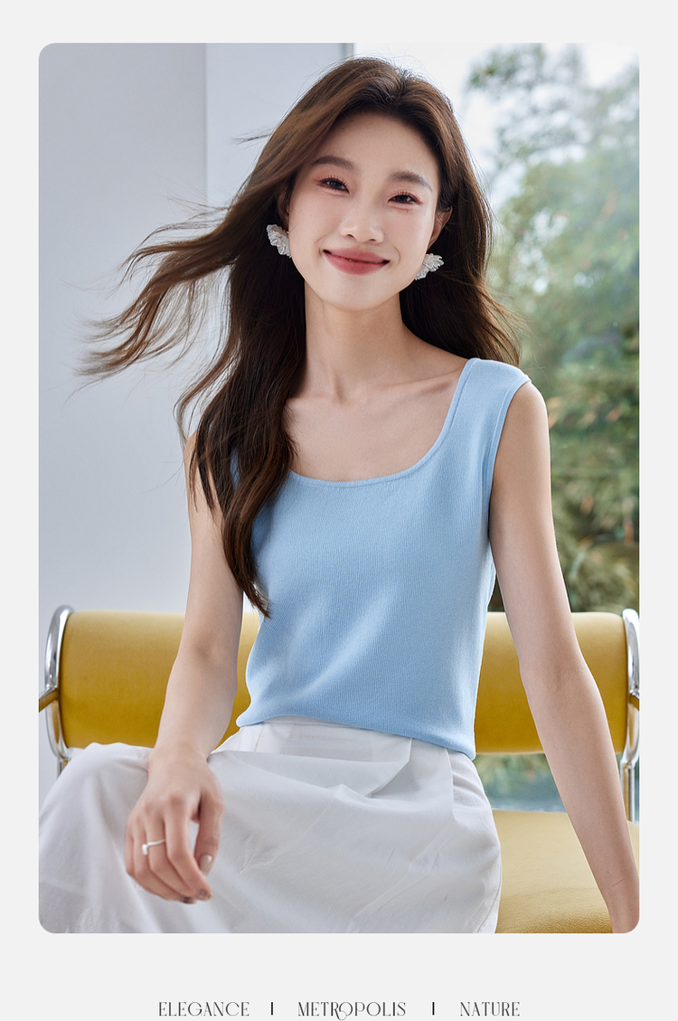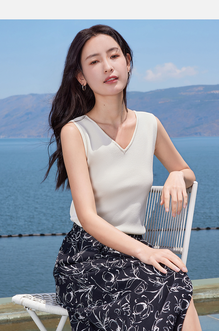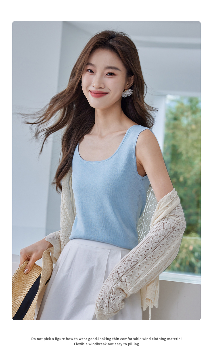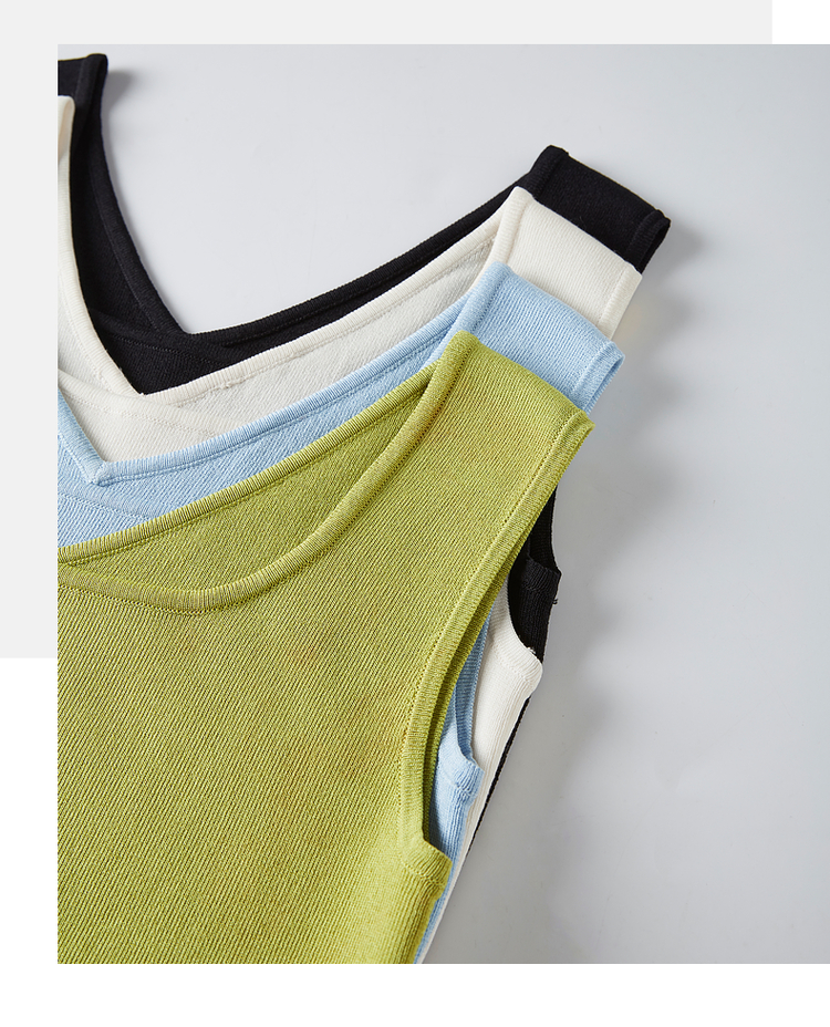 【周四狂欢价】熙世界双型领冰丝针织背心2025夏新款内搭纯色百搭无袖V领上衣