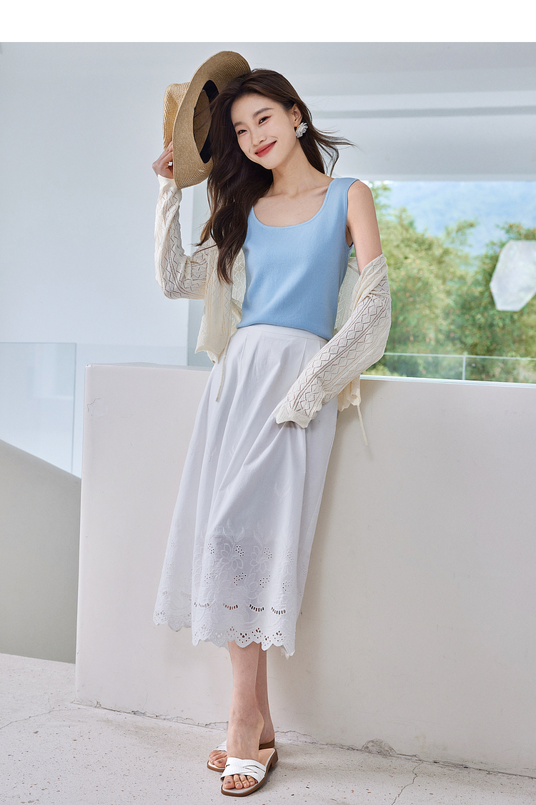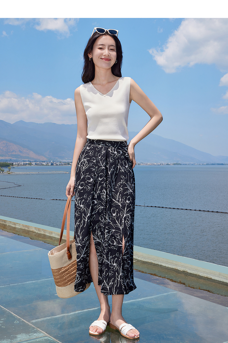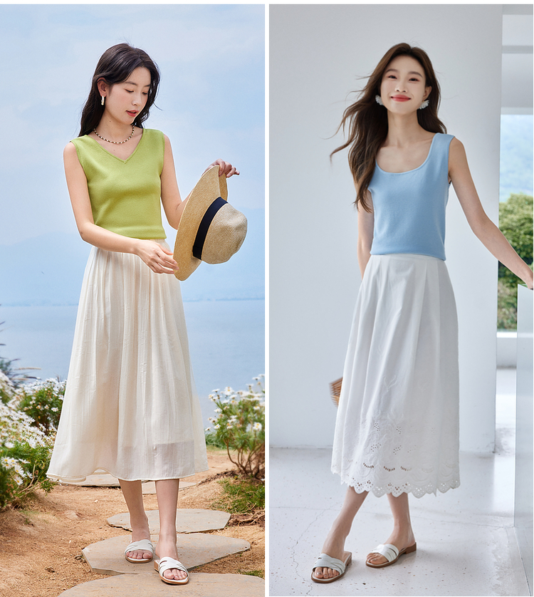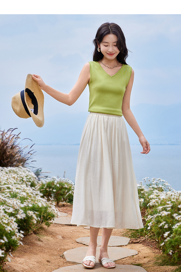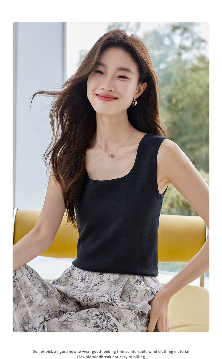 【周四狂欢价】熙世界双型领冰丝针织背心2025夏新款内搭纯色百搭无袖V领上衣
