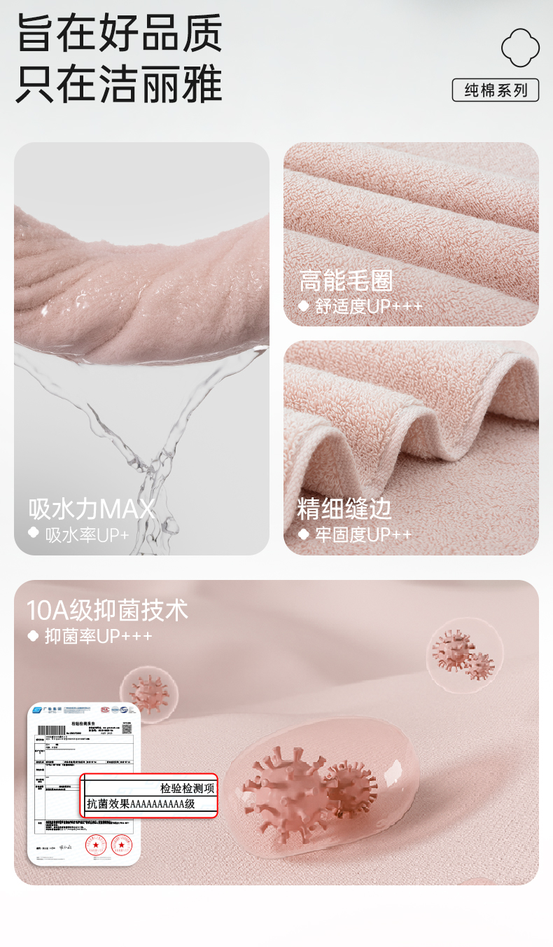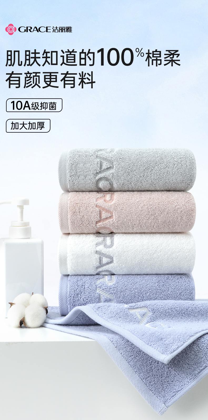 洁丽雅10A抑菌毛巾纯棉洗脸家用女洗澡加厚全棉吸水2025新款面巾