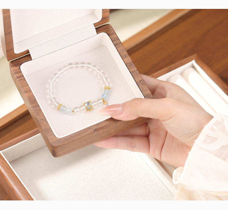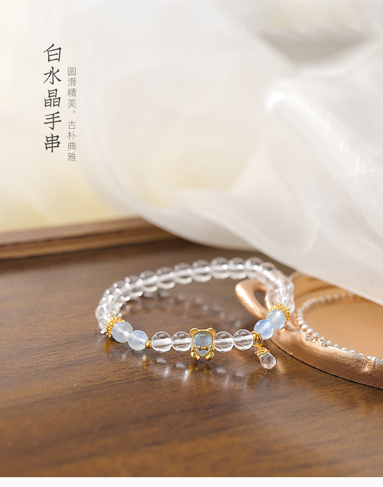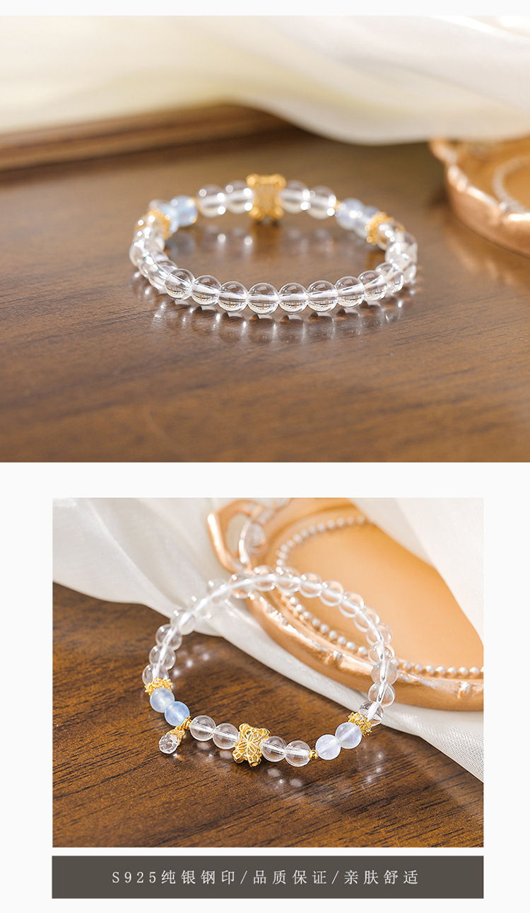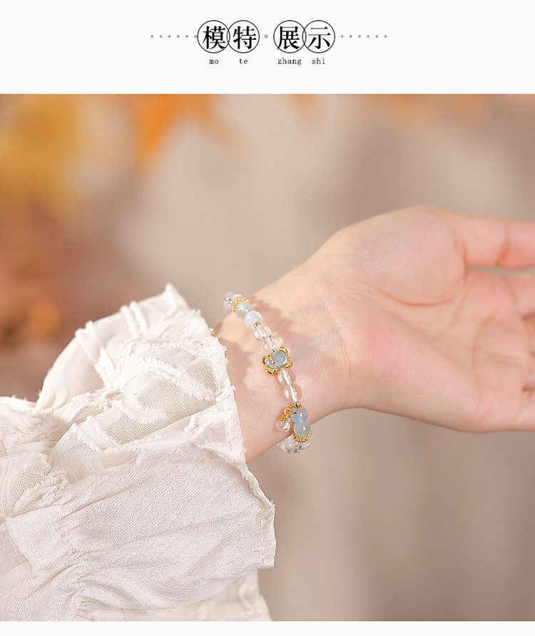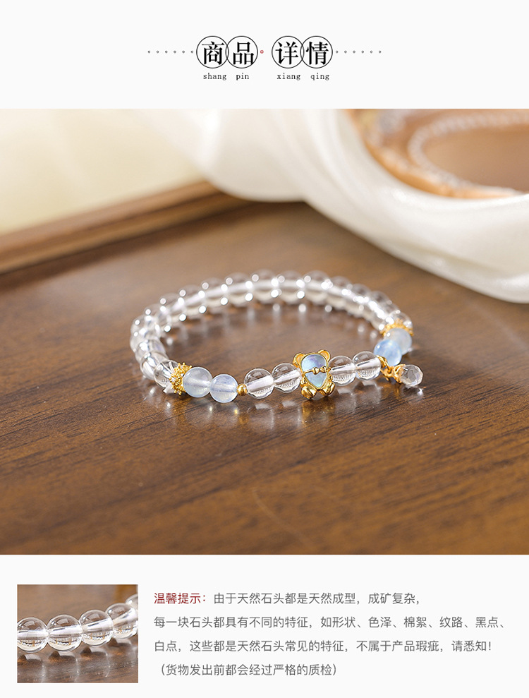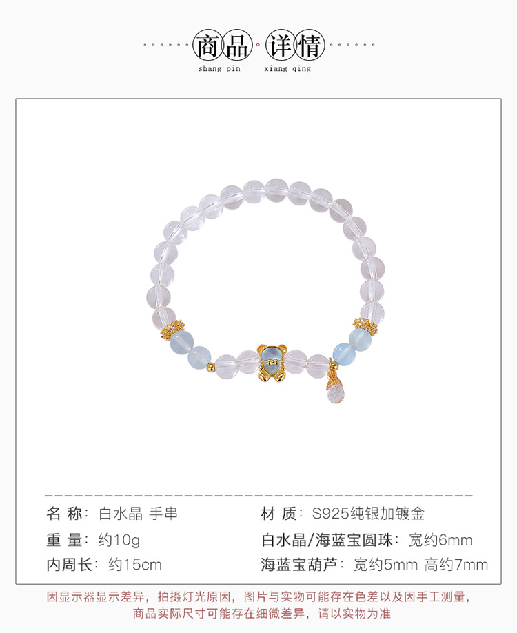 【冰雪小熊】S925纯银海蓝宝白水晶小熊圆珠手串【CW-SL11739-31】